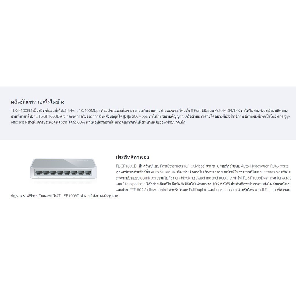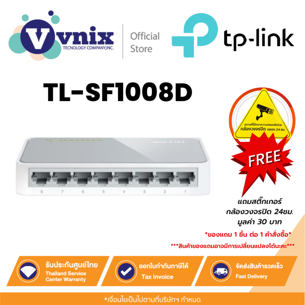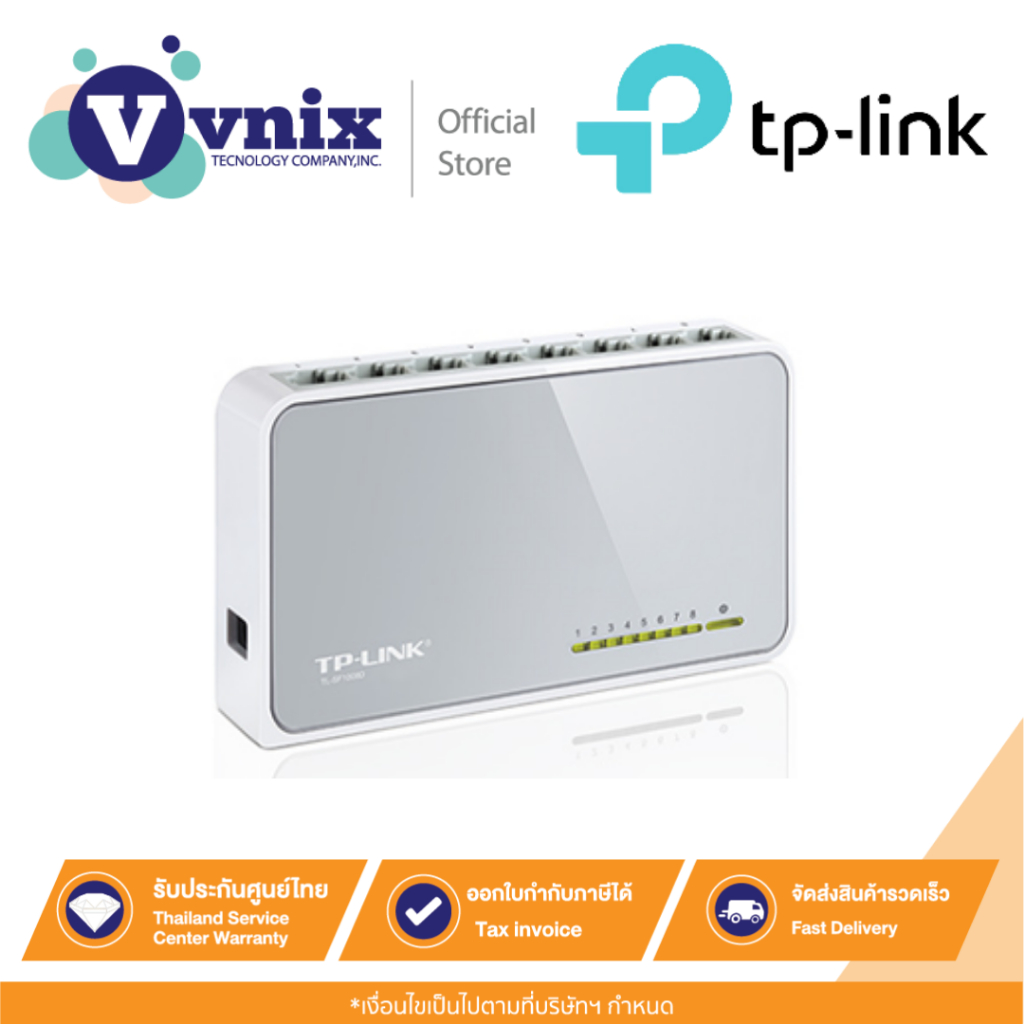 TP-LINK TL-SF1008D SWITCH HUB (สวิตซ์ฮับ) 8-Port 10/100Mbps Desktop รับประกันตลอดอายุการใช้งาน By Vnix Group