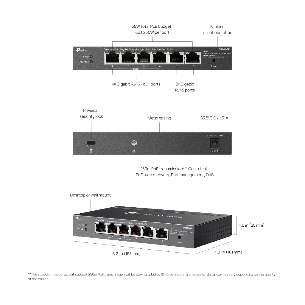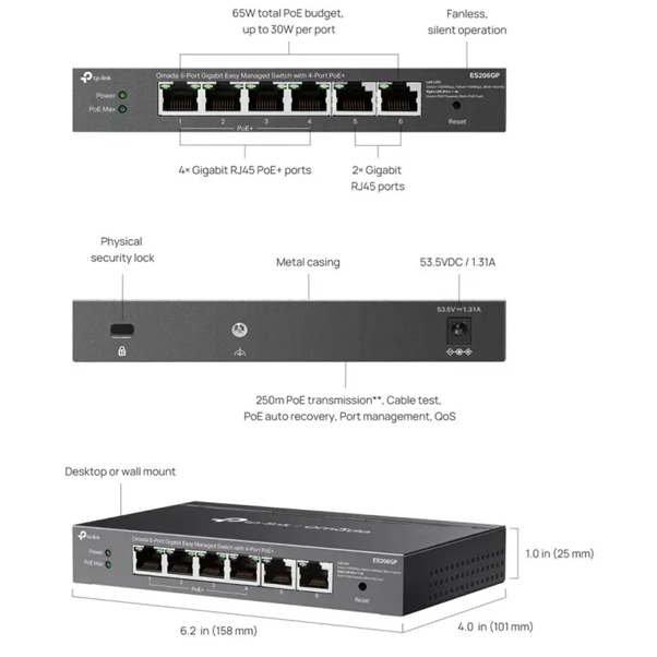 TP-LINK ES206GP Omada 6-Port Gigabit Easy Managed Switch with 4-Port PoE+ [รับประกันตลอดอายุการใช้งาน]