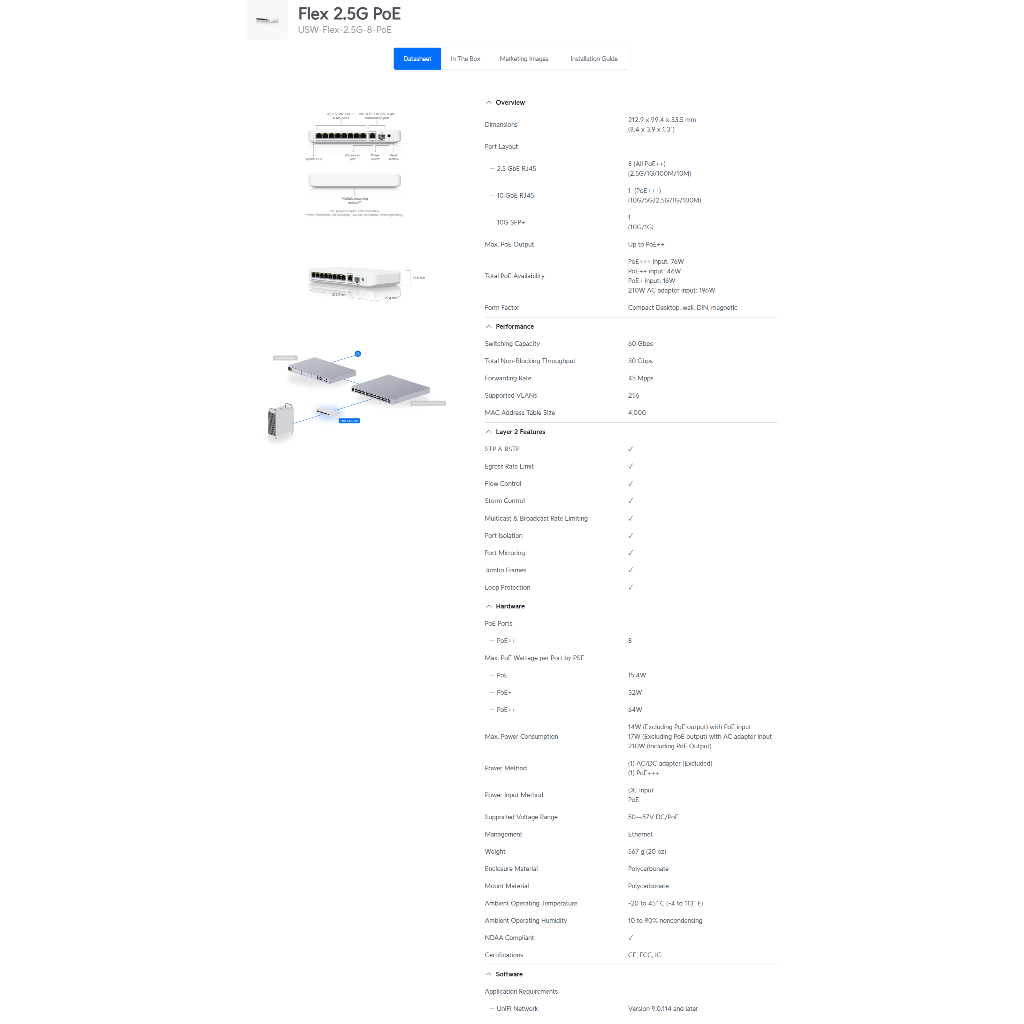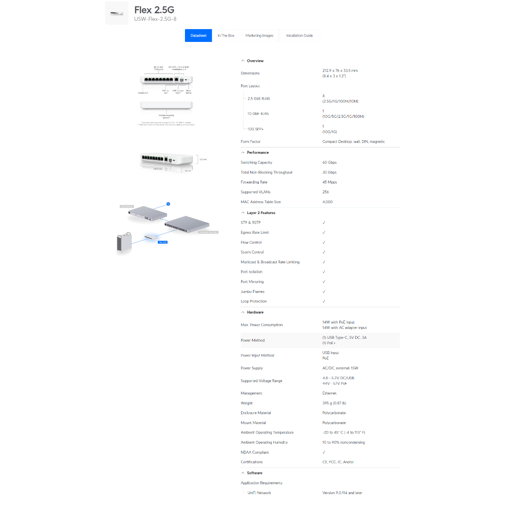 UniFi Switch Flex 2.5G 8-Ports 2.5GbE switch with a 10 GbE RJ45/SFP+ combination uplink