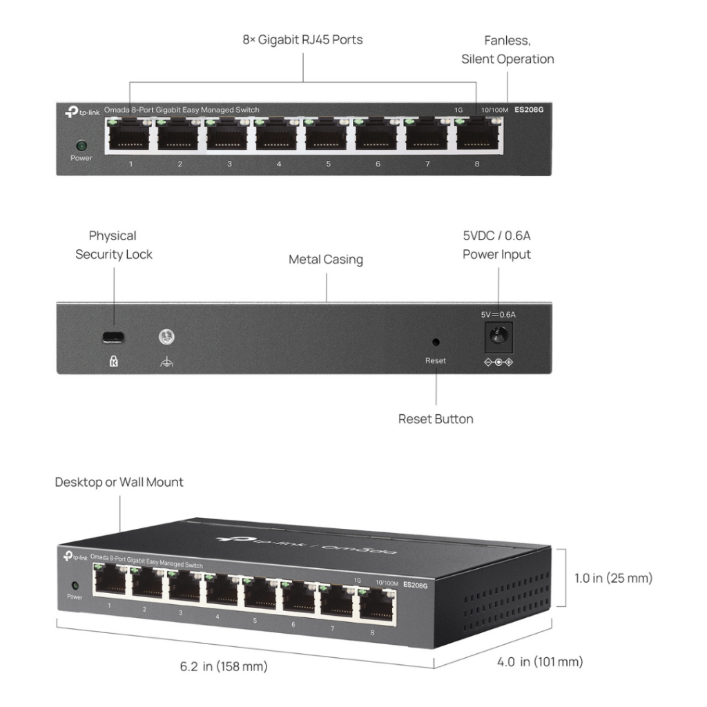 TP-Link ES208G สวิตช์ Omada 8-Port Gigabit Easy Managed Switch By Vnix Group