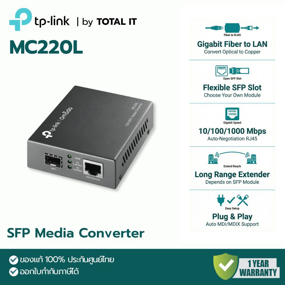 TP-Link Omada MC220L | Gigabit SFP to RJ45 Media Converter | ตัวแปลงสัญญาณ Fiber เป็น LAN