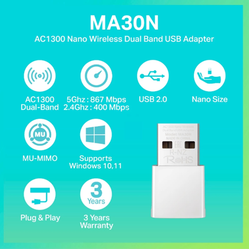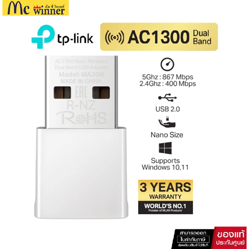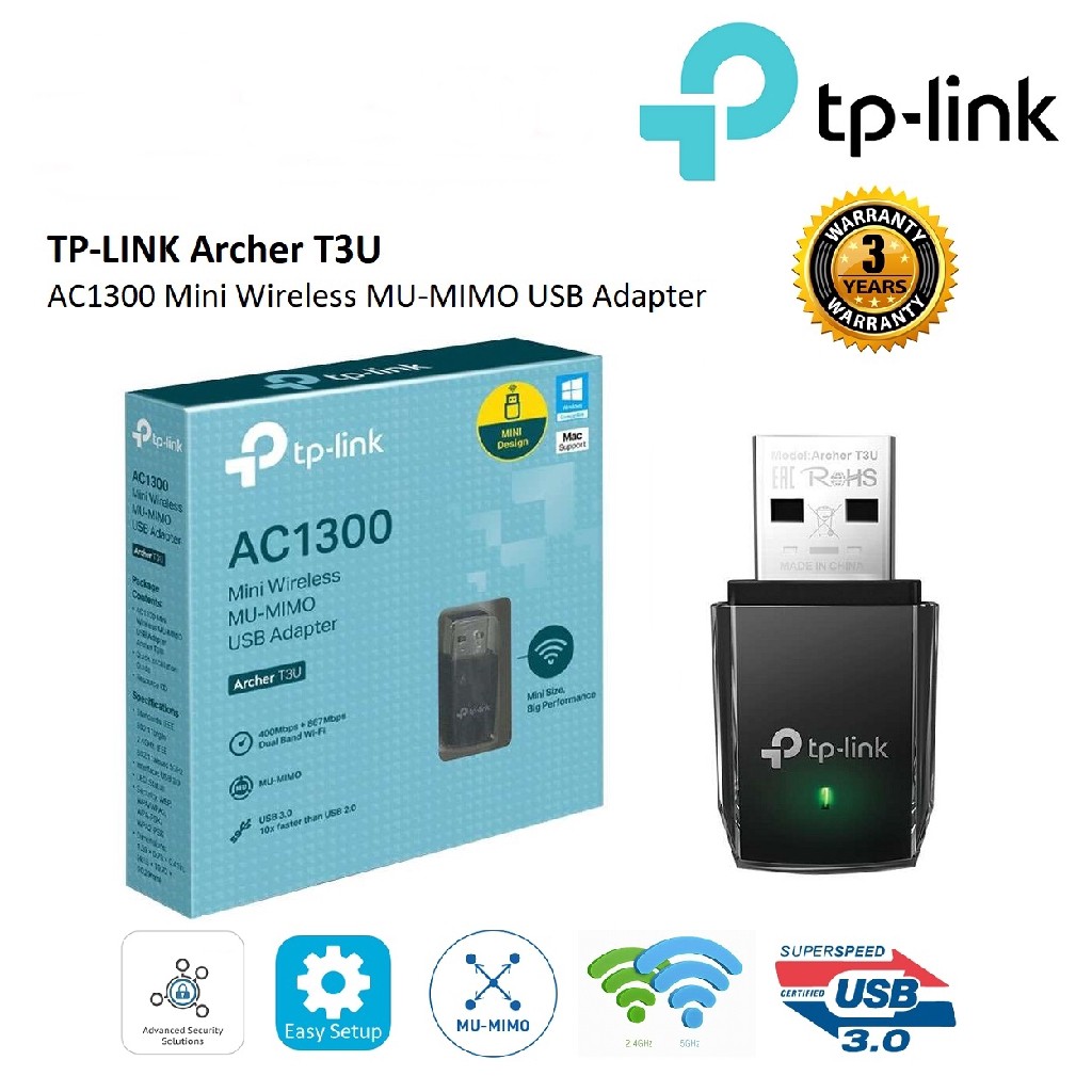⚡️อุปกรณ์รับสัญญาณ⚡️ TP-LINK (Archer T3U) AC1300 Dual Band Wireless USB Adapter 5GHz, 2.4GHz LT