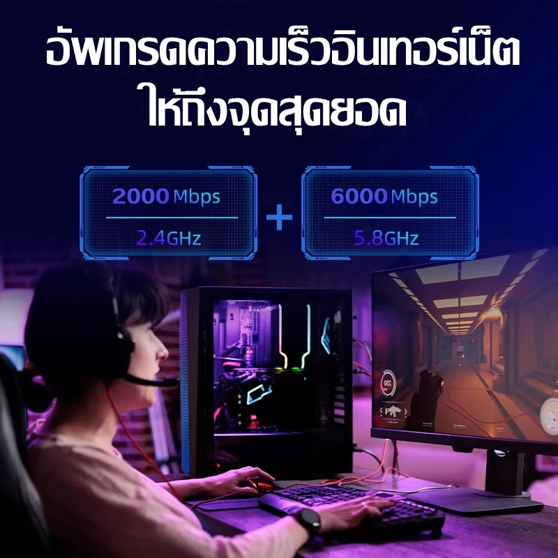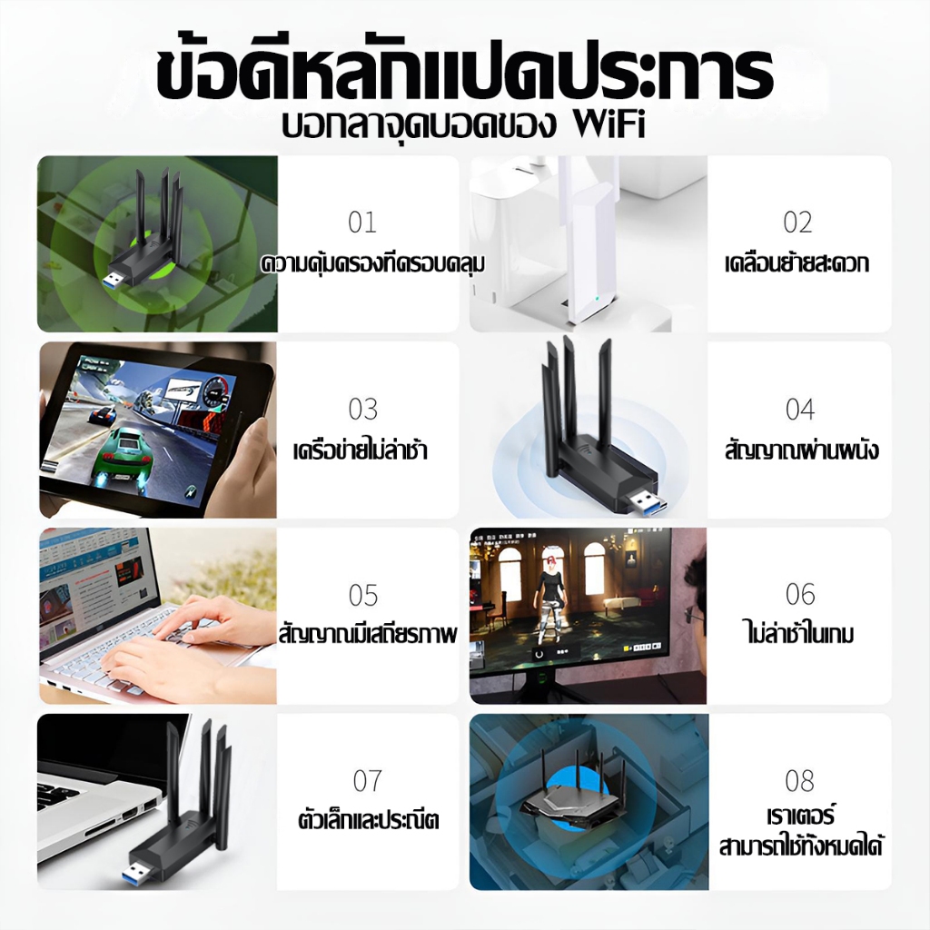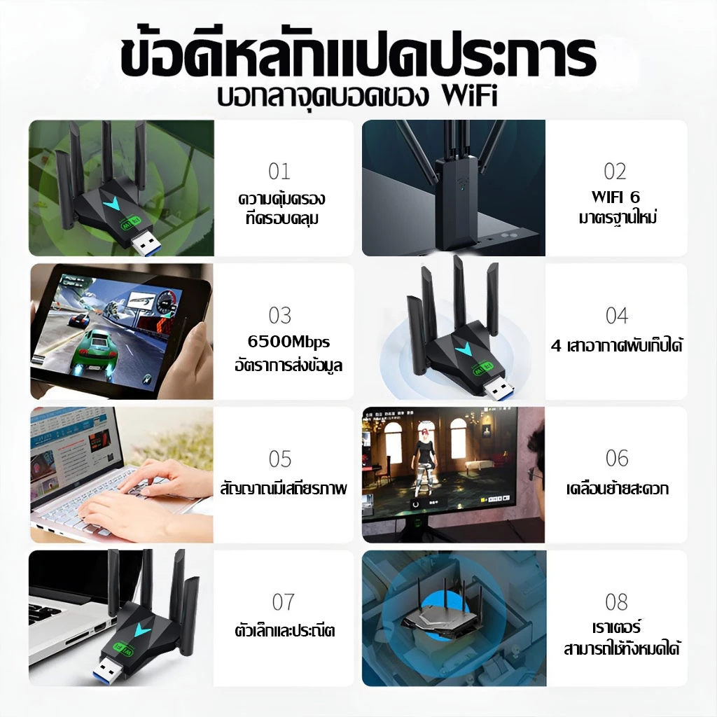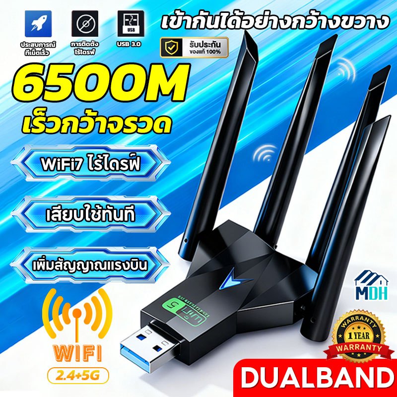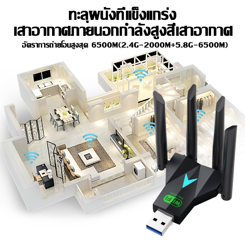【เร็วกว่าจรวด】⚡ตัวรับ wifi แรง 6500Mbps (2.4GHz-5.8GHz USB 3.0) Dual Band USB Adapter ตัวรับสัญญาณไวไฟ ตัวรับสัญญาณ