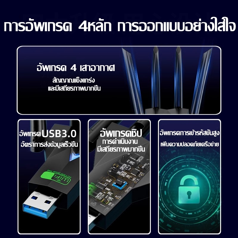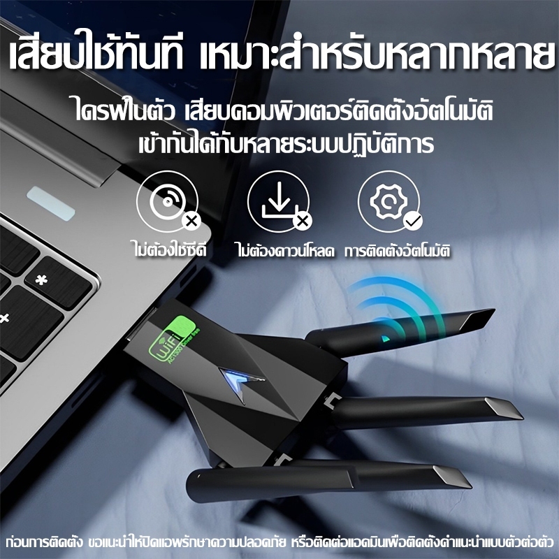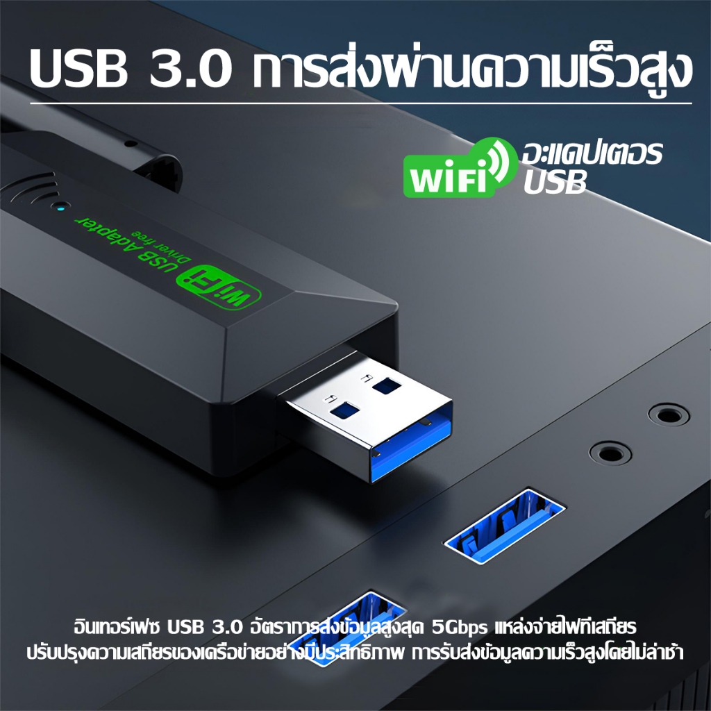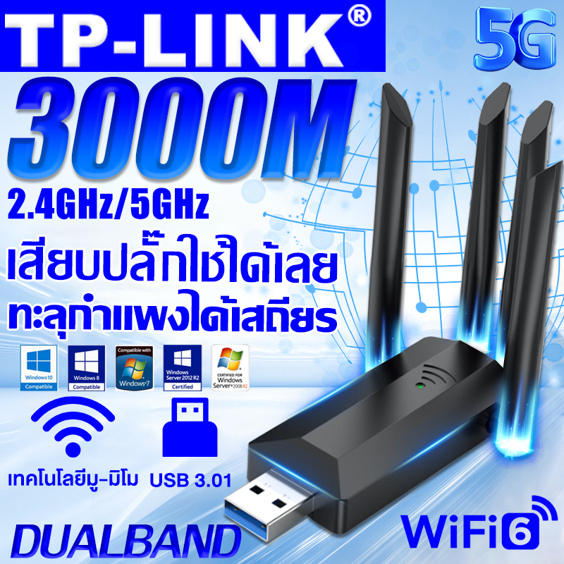 【รับประกัน5ปี】 ตัวรับ wifi แรง USB WIFI 5.0G+2.4GHz Speed3000Mbps USB3.0 ใช้ได้กับหลากหลายรุ่น ตัวรับสัญญาณไวไฟ