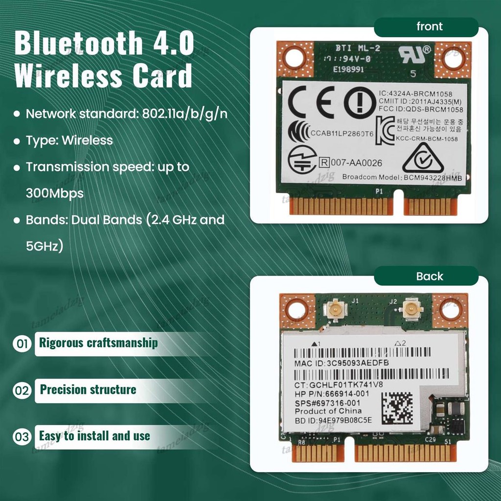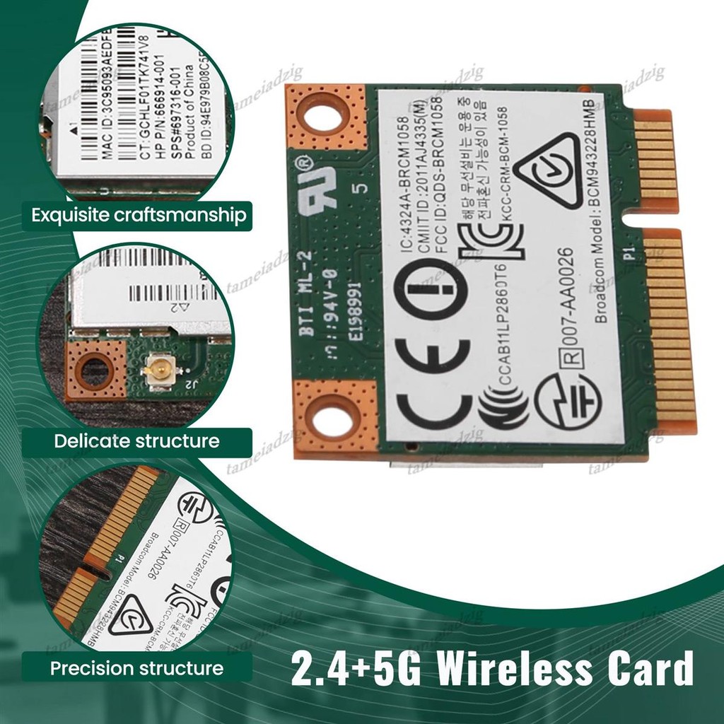 ⭐Dual Band 2.4 + 5G 300M 802.11A/B/G Wifi บลูทูธ 4.0 ไร้สายครึ่ง Mini Pci-E การ์ดสําหรับ Bcm943228Hmb 718451-001