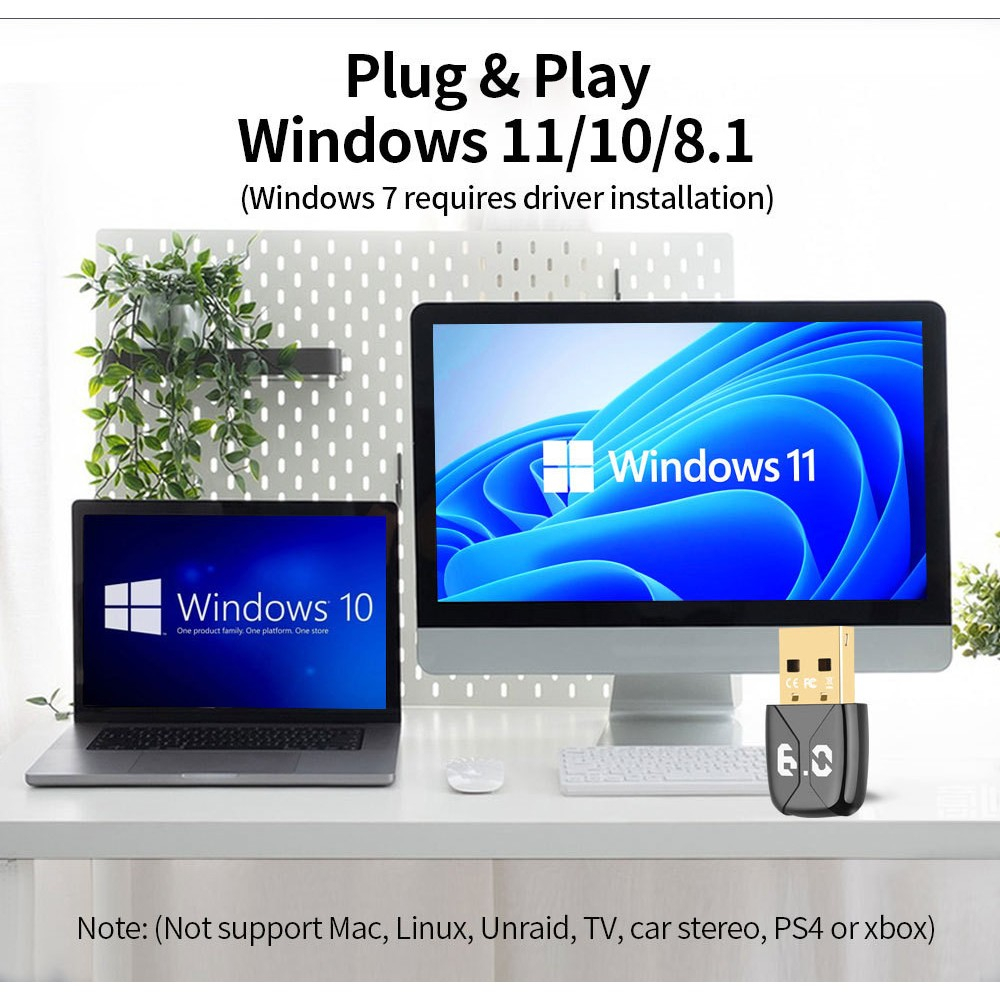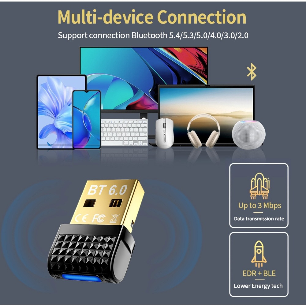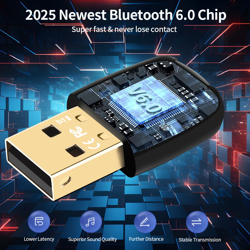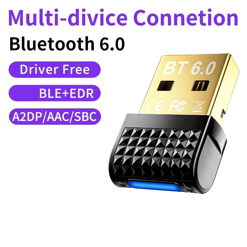 Bluetooth 6.0 อะแดปเตอร์บลูทูธ 6.0 สําหรับลําโพงพีซีเสียงคีย์บอร์ดไร้สายเมาส์เครื่องส่งสัญญาณ USB