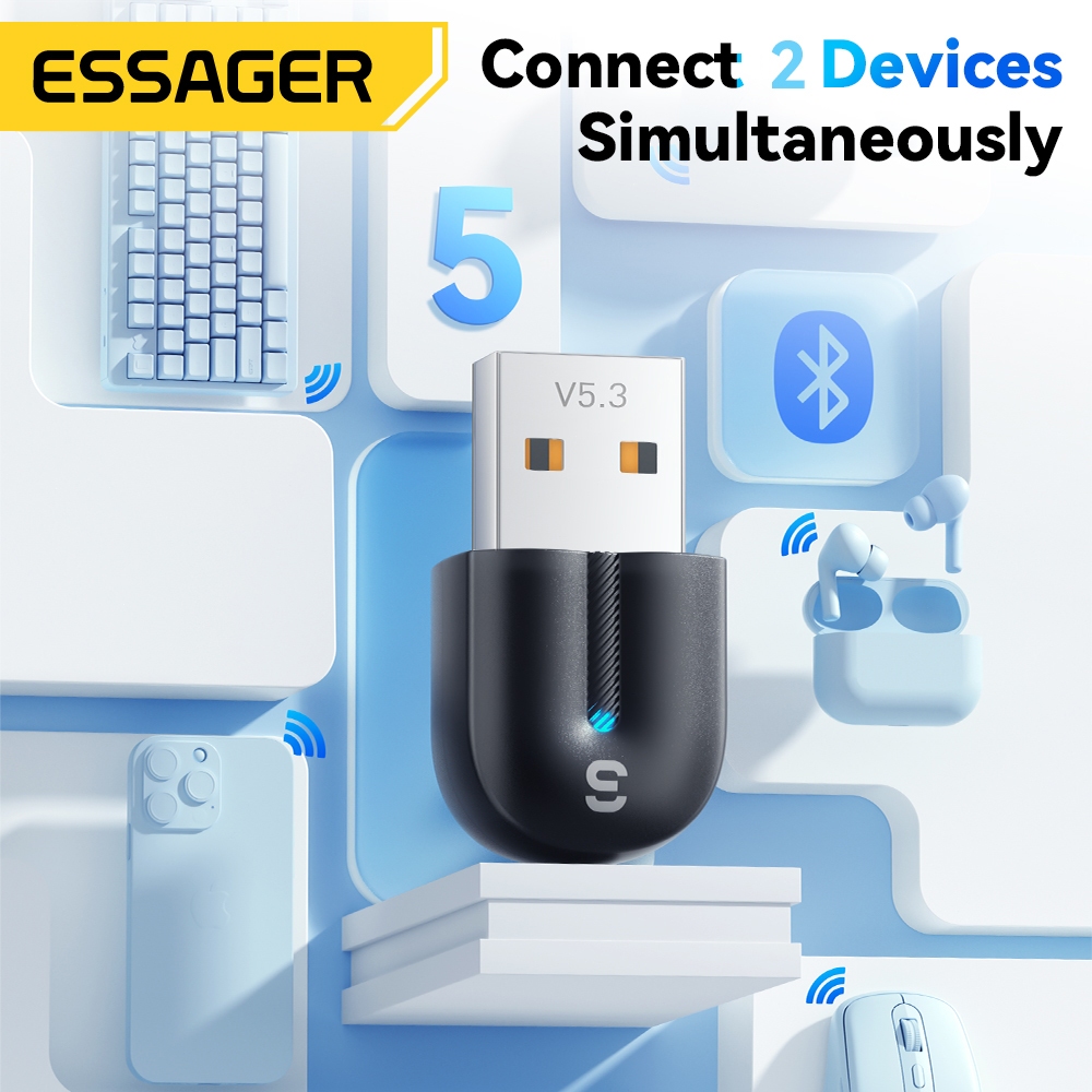 Essager อะแดปเตอร์บลูทูธ USB Dongle บลูทูธ 5.3 สําหรับ PC แล็ปท็อปลําโพงเครื่องรับสัญญาณเสียงเมาส์ไร้สายคีย์บอร์ด USB Transmitter