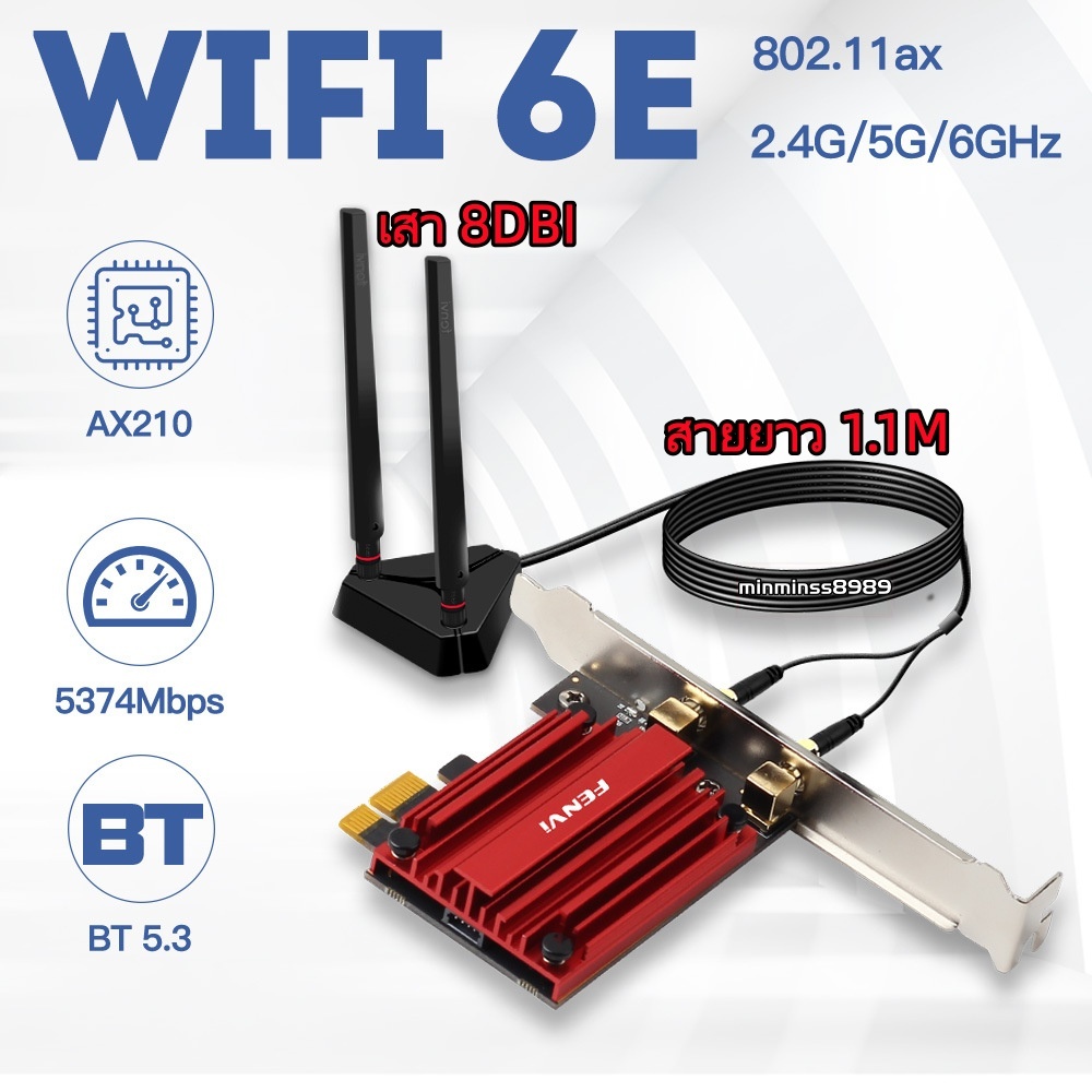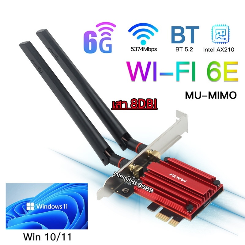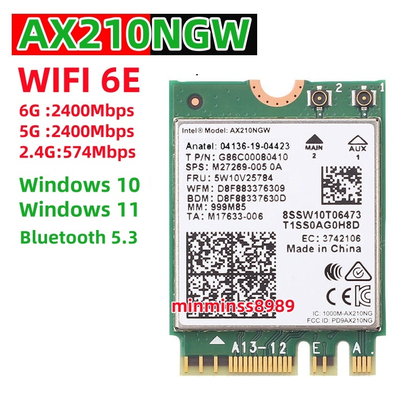 Adapter M2/NGFF TO PCIE AX210 Intel WiFi 6E Bluetooth 5.3 MU-MIMO AX210NGW 802.11ax Tri-Band Wi-Fi 2.4/5/6 GHz