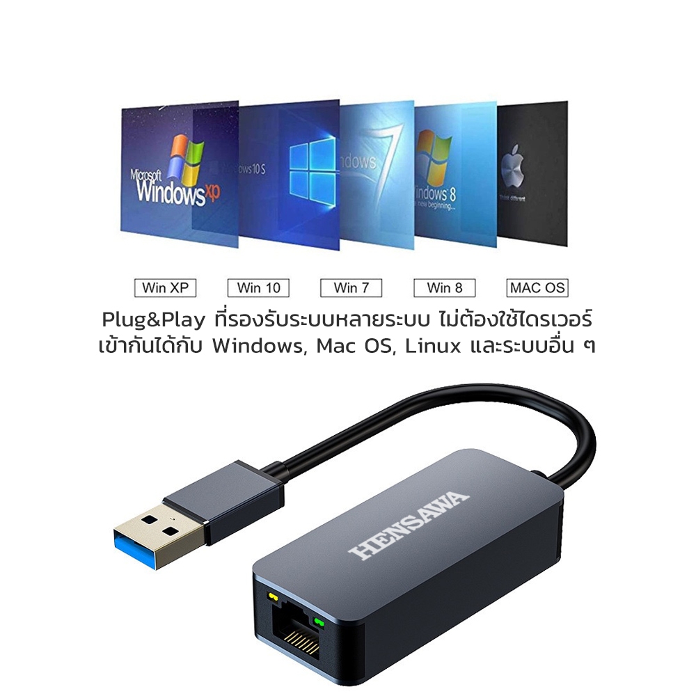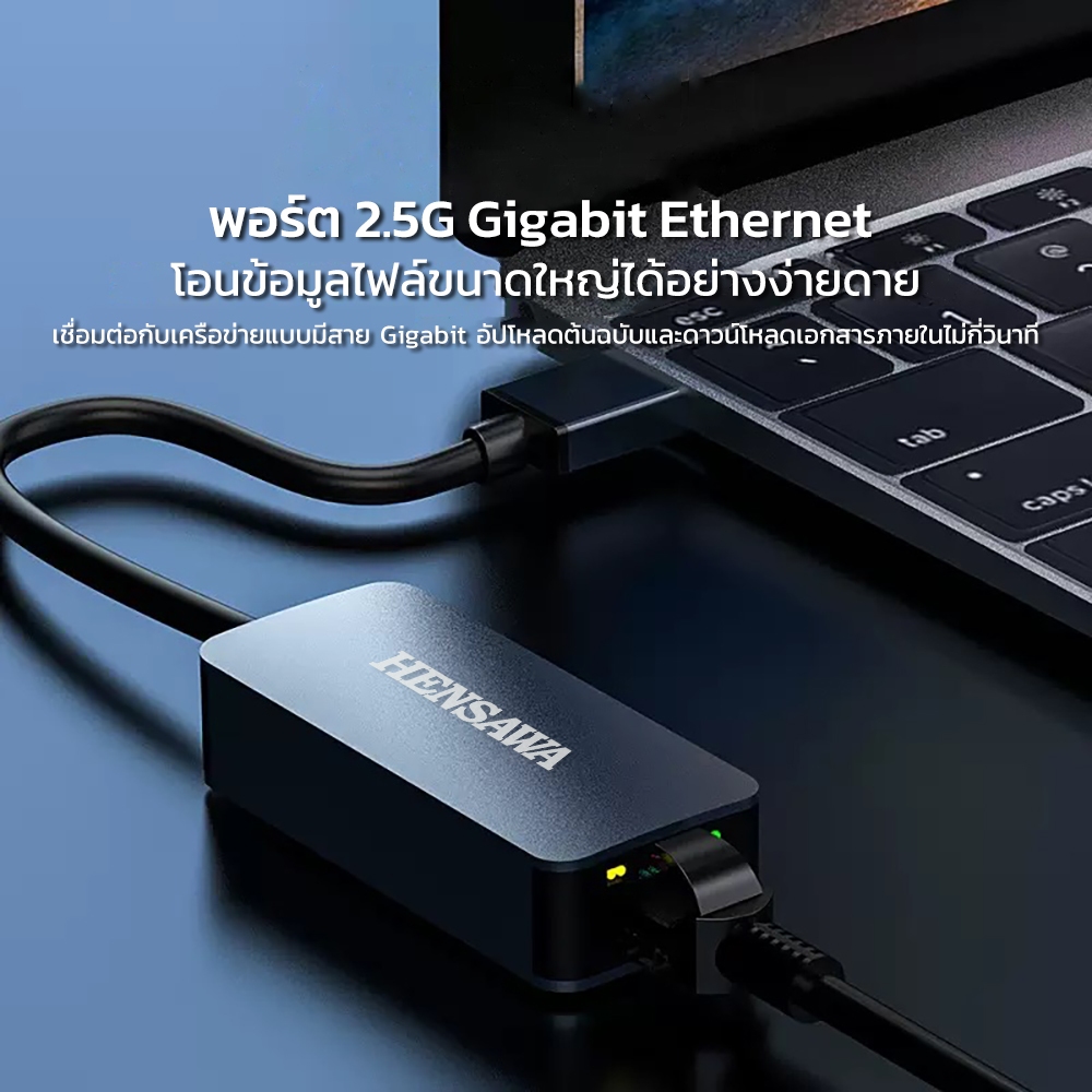 Hensawa อะแดปเตอร์อีเทอร์เน็ต Type-c to RJ45 USB 3.0 to RJ45 LAN 2.5G 2500Mbps Gigabit Ethernet Adapter Network Adapter