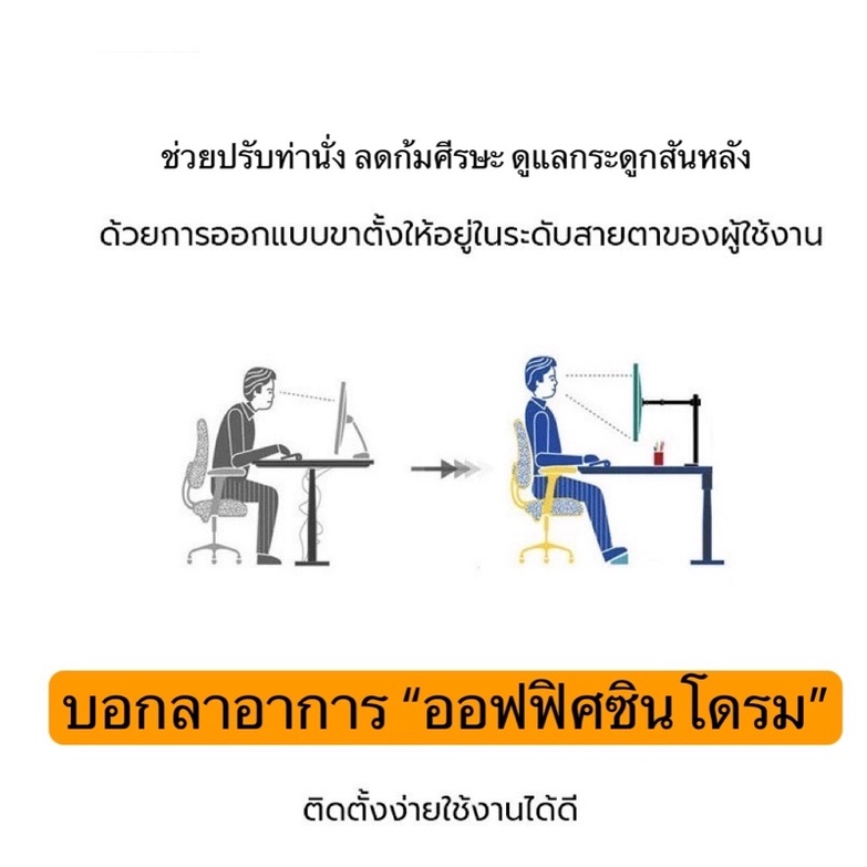 ขาตั้งจอคอม หมุนได้360°ช่วยปรับท่านั่ง ลดอาการปวดคอบ่าไหล่ รองรับน้ำหนัก 2-9kg – รับประกัน 3 ปี
