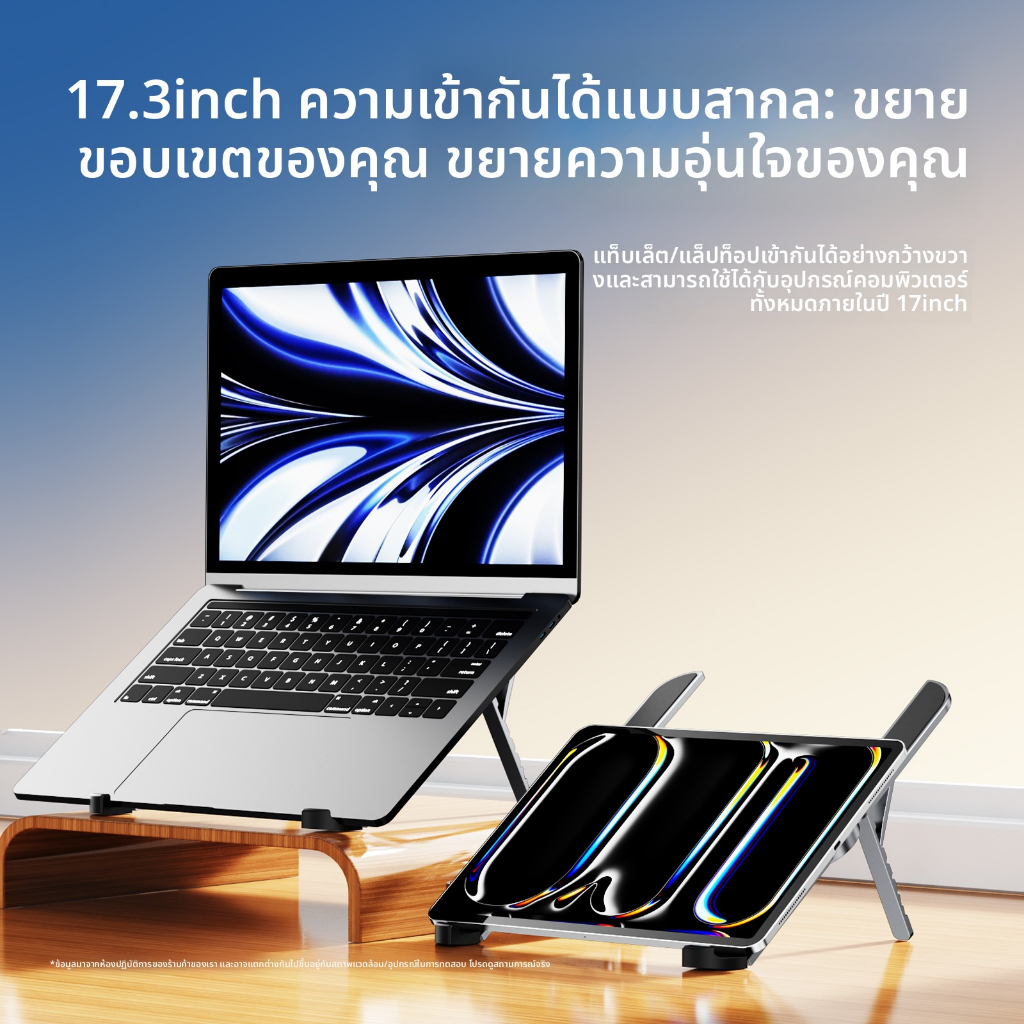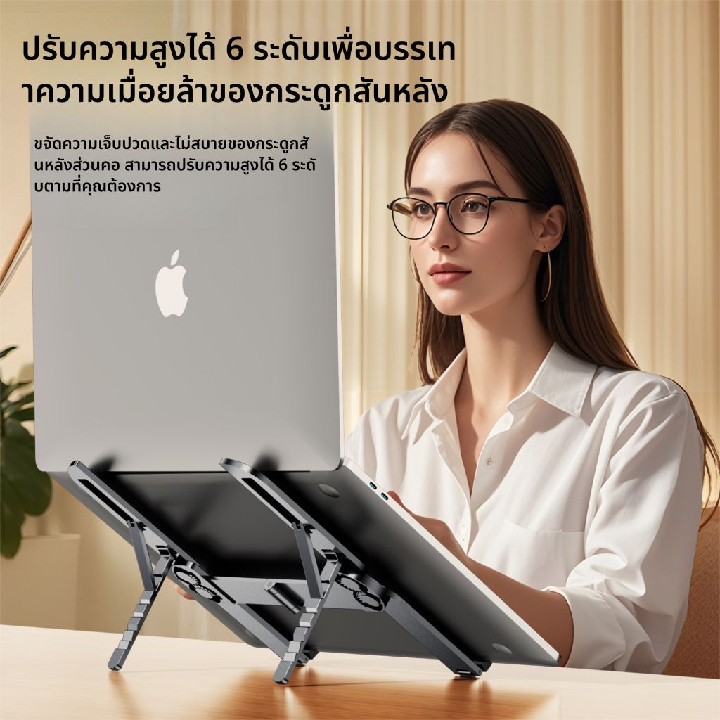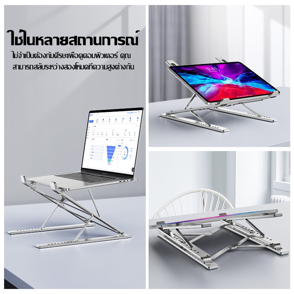 ขาตั้งแล็ปท็อป อลูมิเนียม แท่นวางโน๊ตบุ๊ค ที่วางแล็ปท็อป อลูมิเนียม ที่วางไอแพด พับเก็บได้ กันลื่น ปรับได้