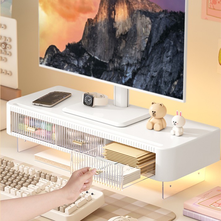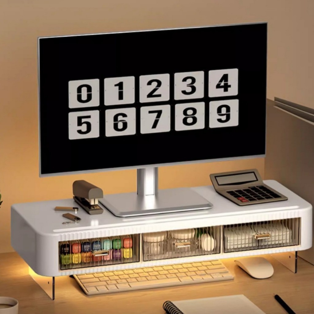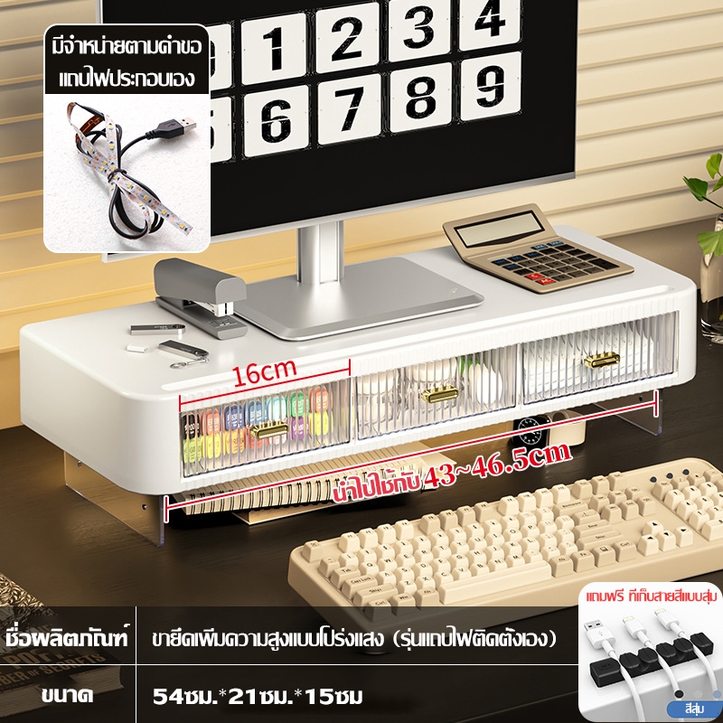 ชั้นวางคอมพิวเตอร์ตั้งโต๊ะ ชั้นวางบนโต๊ะทํางาน เซตลิ้นชัก ชั้นวางจอคอม มี 3 ลิ้นชัก ความสูง: 8 ซม./15 ซม