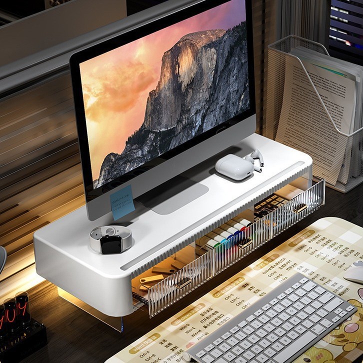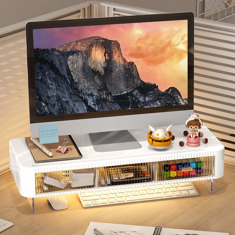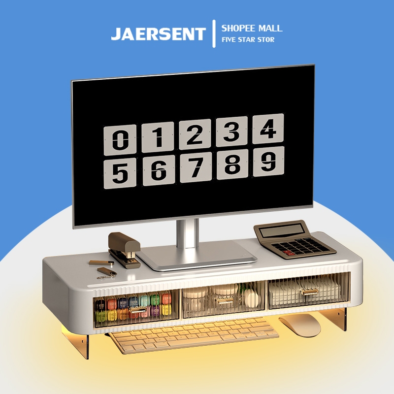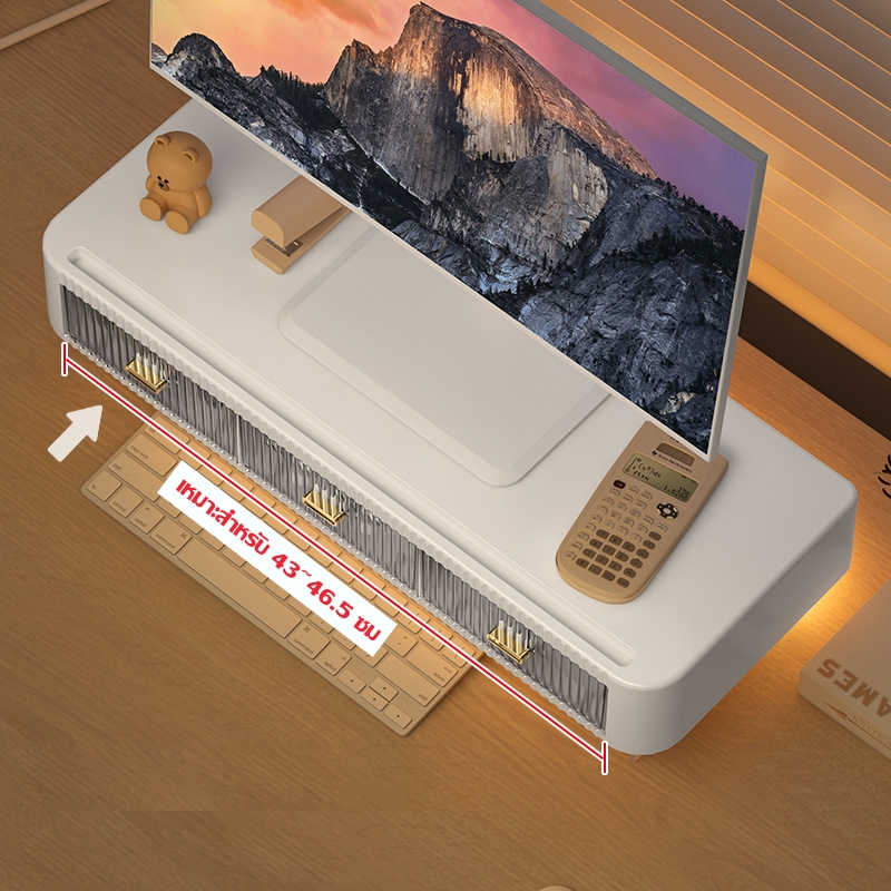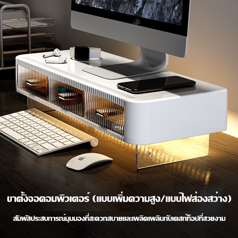 ชั้นวางจอมอนิเตอร์คอมพิวเตอร์พร้อมที่เก็บของ ใช้ในสำนักงาน โต๊ะทำงาน แล็ปท็อป เพิ่มความเสถียร