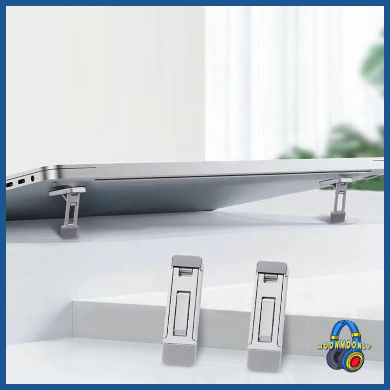 ดวงจันทร์ 2ชิ้นปรับพับแล็ปท็อปยืนมินิขาแบบพกพาสนับสนุนสําหรับโน๊ตบุ๊คระบายความร้อนผู้ถือฟุตที่มองไม่เห็นวงเล็บ