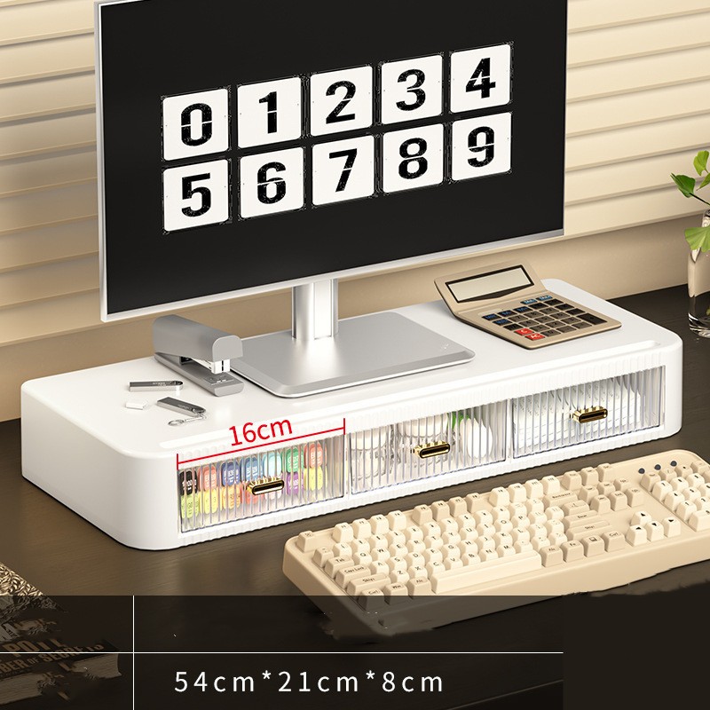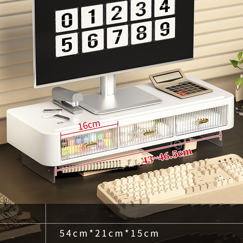 ชั้นวางจอคอม ชั้นวางโน็ตบุ๊ค มาพร้อม 3 ลิ้นชัก ขนาด: 54 ซม.* 21 ซม.* 15 ซม
