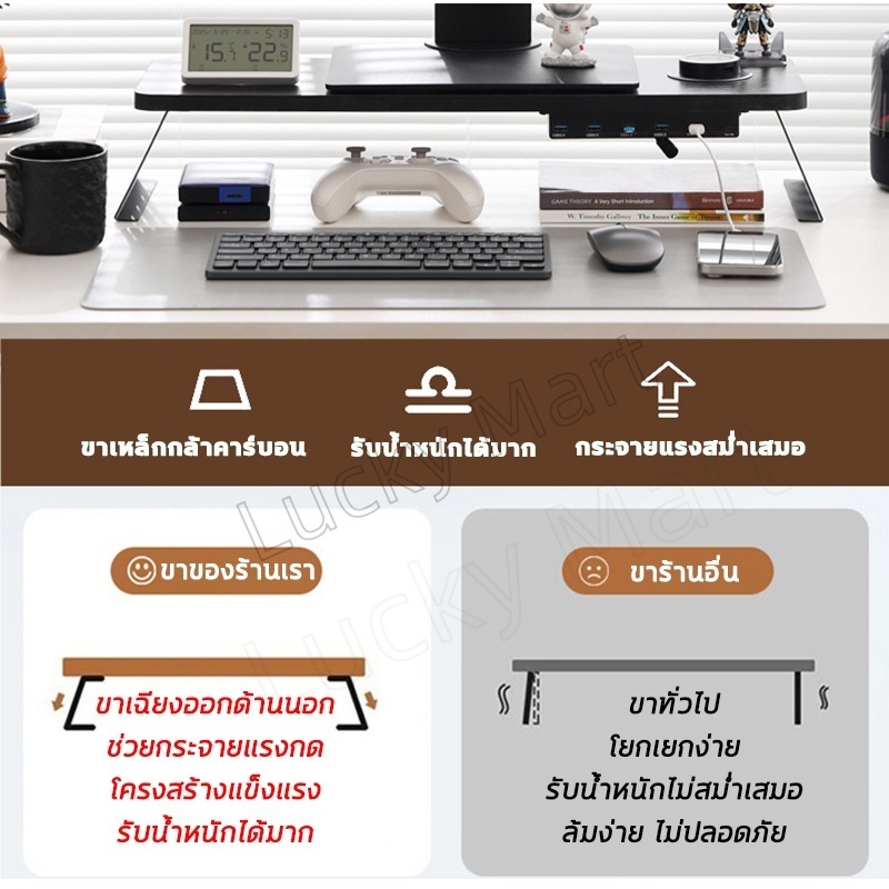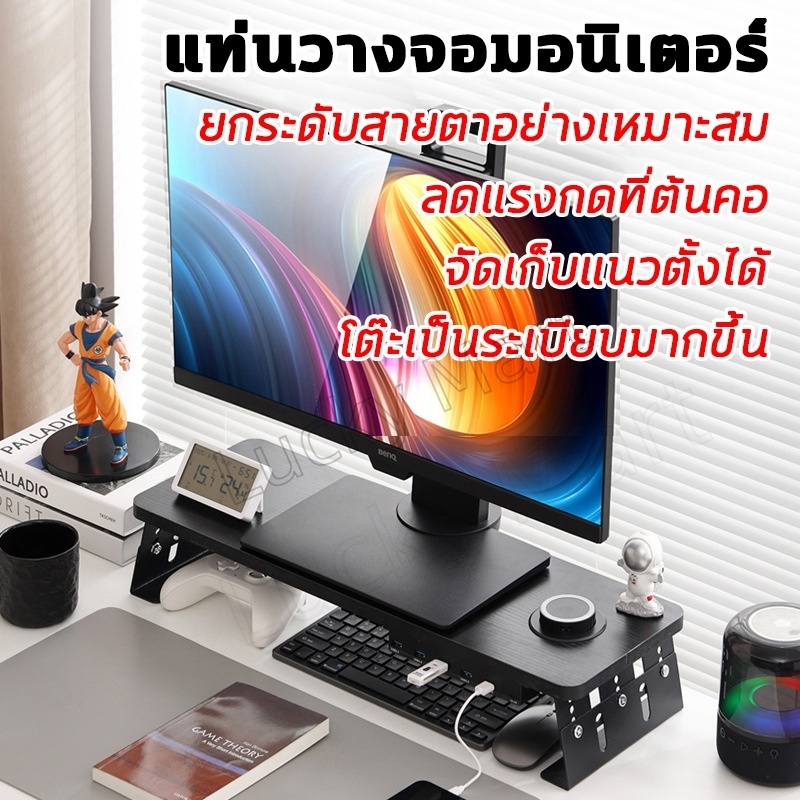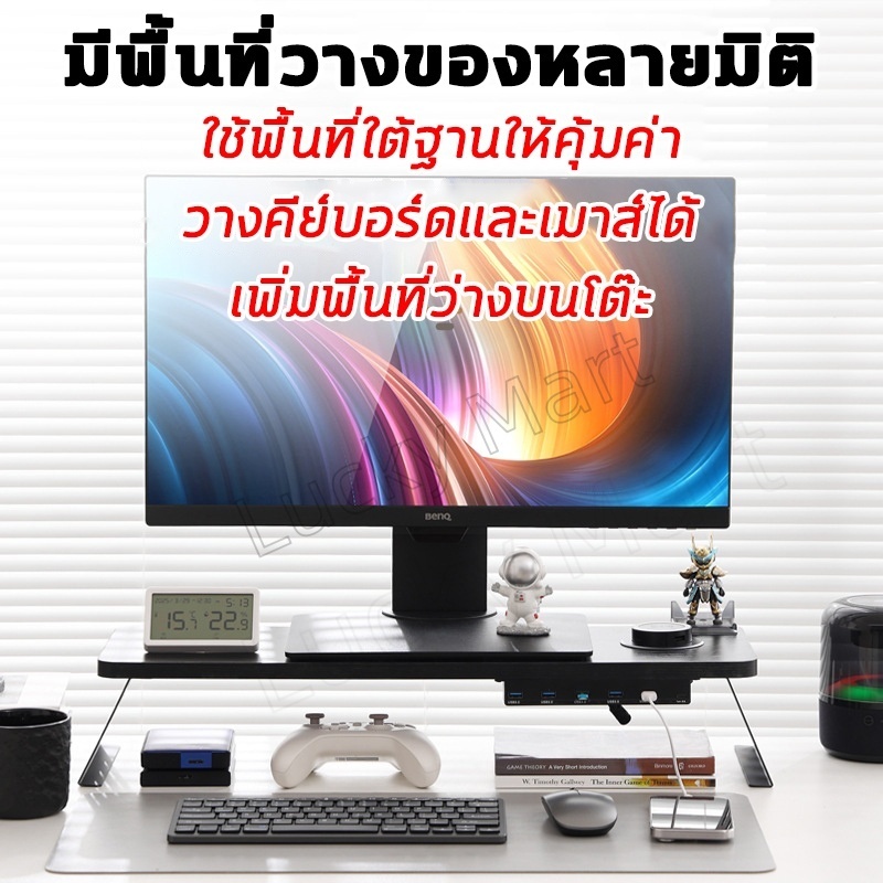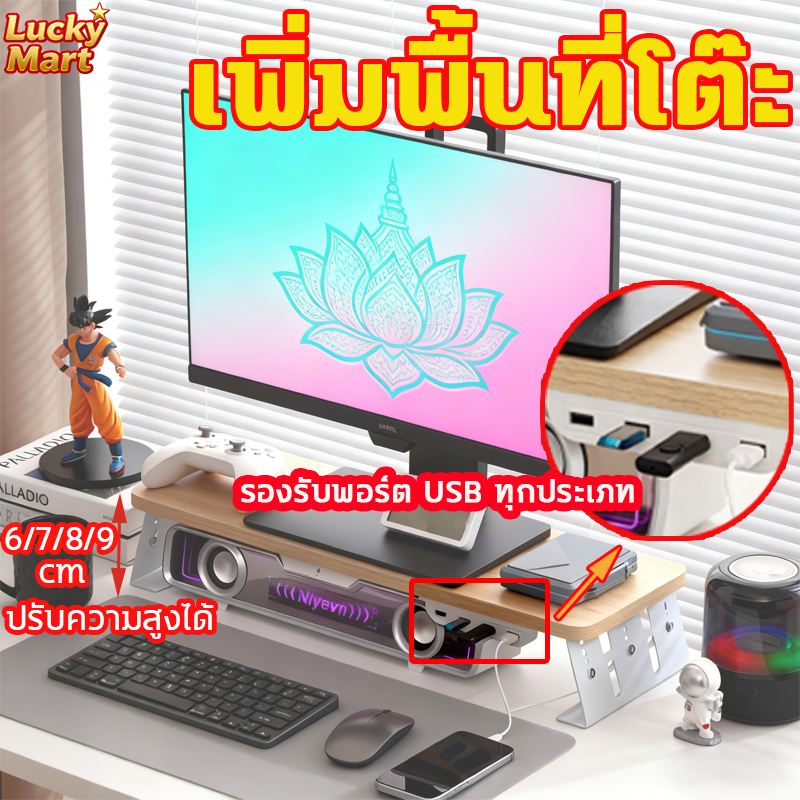 ชั้นวางจอคอม ชั้นวางโน้ตบุ๊ค มีพอร์ต USB 4 ช่อง ปรับระยะได้ 6/7/8/9cm ดูแลคอสุขภาพ เพิ่มพื้นที่โต๊ะ
