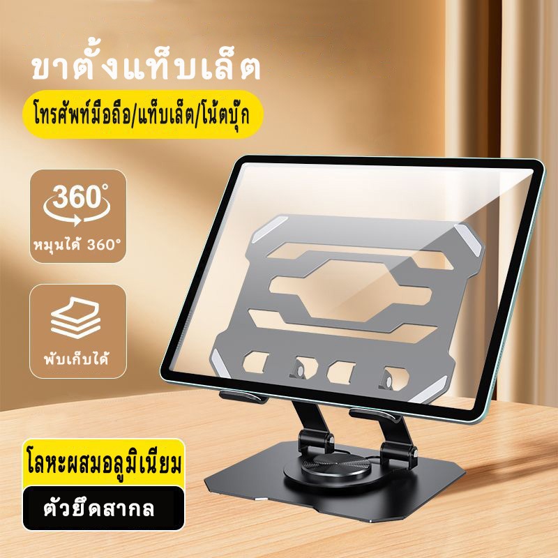 ตั้งแท็บเล็ต 360° ขาตั้งiPad หมุนพับ ได้ ปรับความสูงได้ ผลิตจากอลูมิเนียมวัสดุคุณภาพ แข็งแรง หมุนได้ Anti-Slip