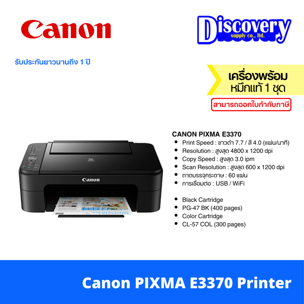 Canon PIXMA E3370 All in One Printer (print/scan/copy/wifi) สามารถพิมพ์ผ่านมือถือได้ เครื่องพิมพ์อิงค์เจ็ท (ไม่มีแทงค์)