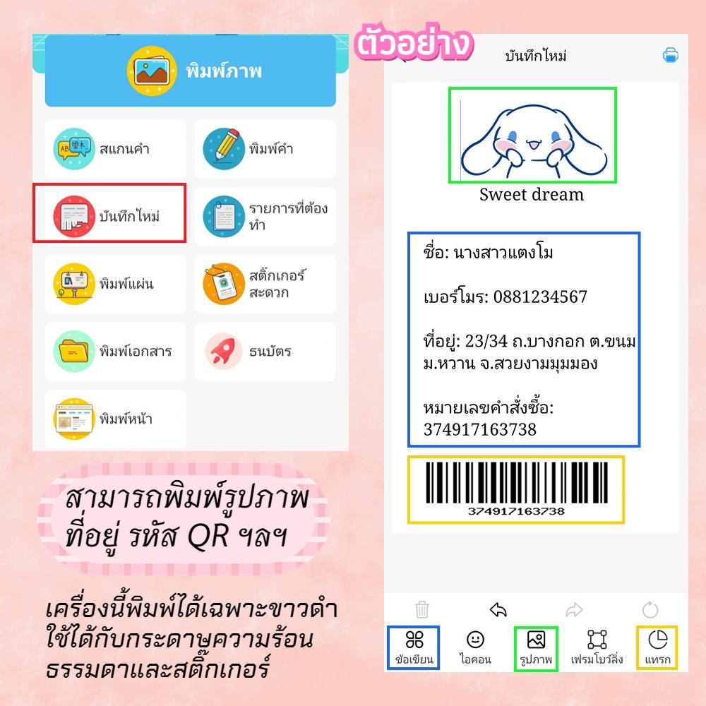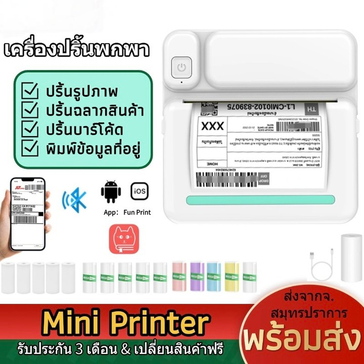 57mm เครื่องปริ้นสติกเกอร์ mini Printer เครื่องปริ้นพกพา ต่อบลูทูธ