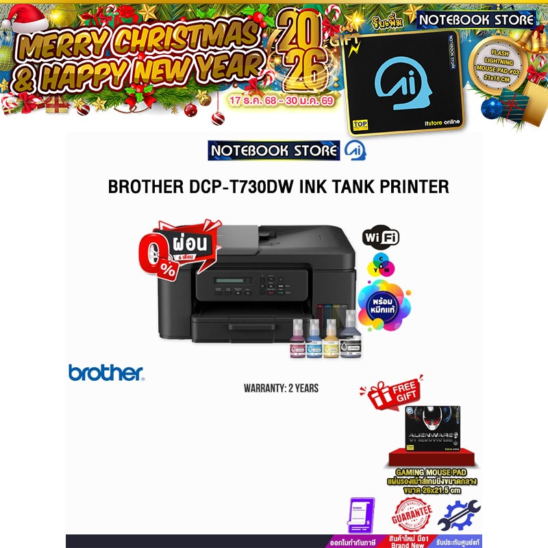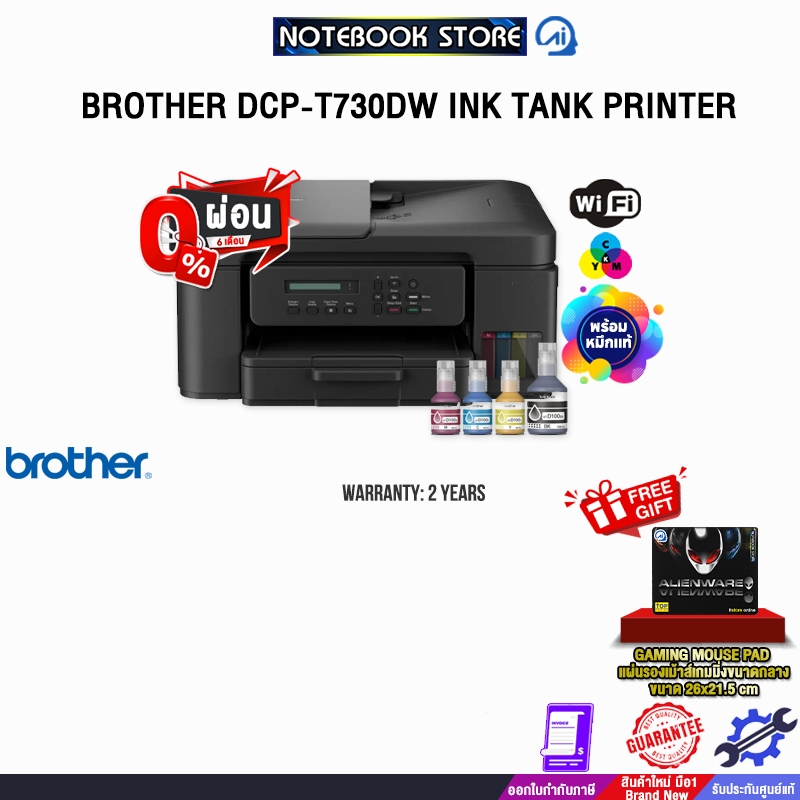 [ผ่อน 0% 6 ด.][กดโค้ด NOTEBTPD1 ลดเพิ่ม 200.-]BROTHER DCP-T730DW INK TANK PRINTER /ประกัน 2 Years