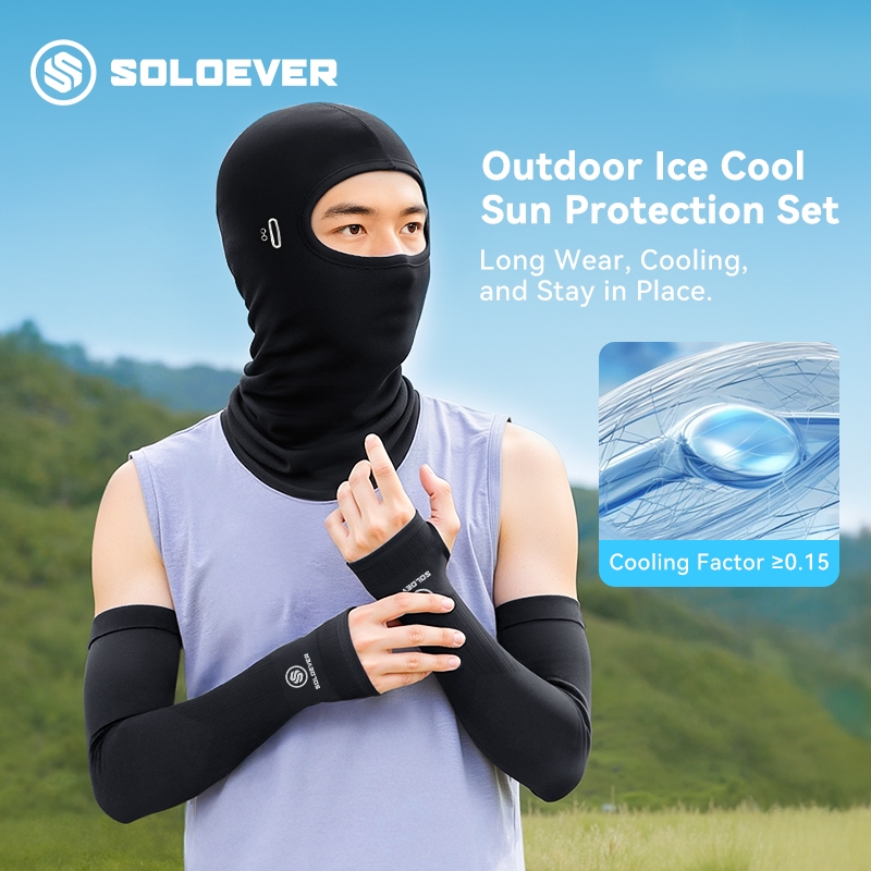 【TH Delivery】SOLOEVER ชุดป้องกันแสงแดดครบชุด ปลอกแขนเย็น-เย็น UV UPF50+ และหน้ากากเต็มหน้า ป้องกันแสงแดด สำหรับปั่นจักรยาน ตกปลา มอเตอร์ไซค์ กีฬากลางแจ้ง เหมาะสำหรับผู้ชายและผู้หญิง