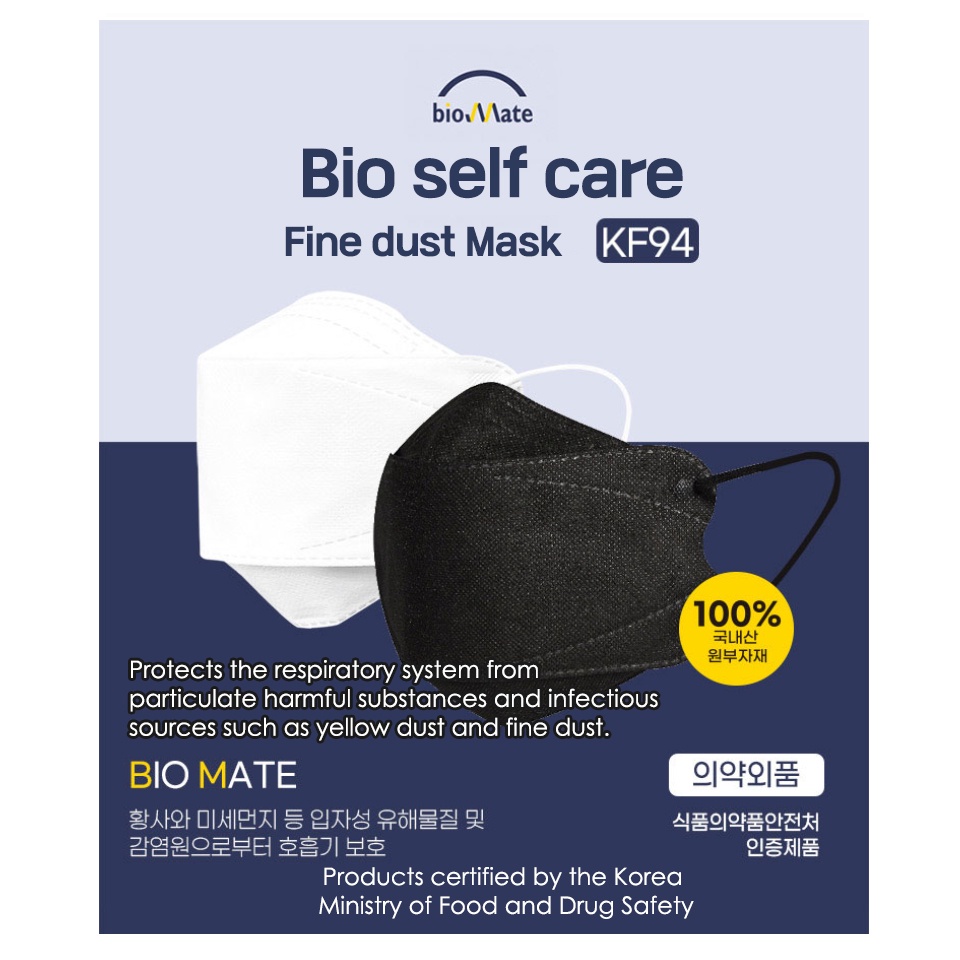 [Made in Korea] Bio mate KF94 mask / Bio self care / 4 PLY Disposable Face Masks / Individual Packaging