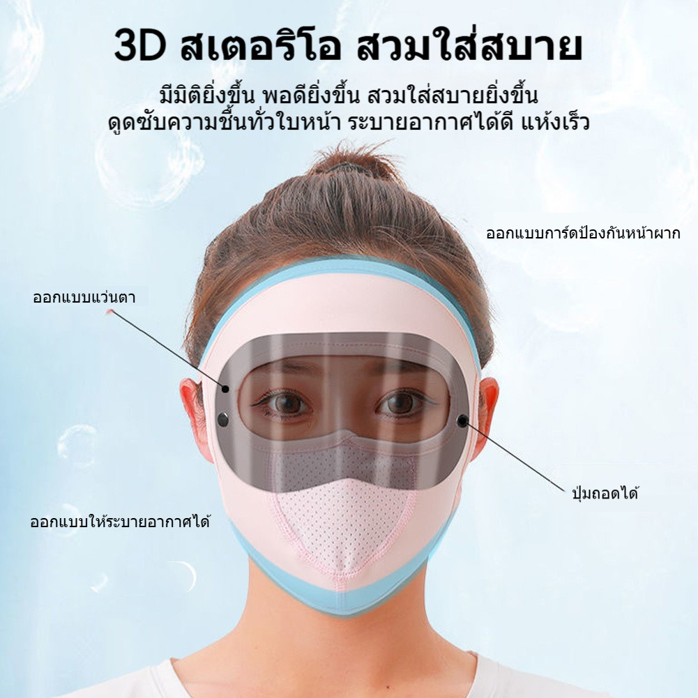? หน้ากาก กันแดด รุ่นกันลม กันฝุ่น UV แบบเต็มหน้า ออกกำลังกาย กีฬา ยืดได้เยอะ ระบายอากาศดี นุ่มสบาย สไตล์เกาหลี ?