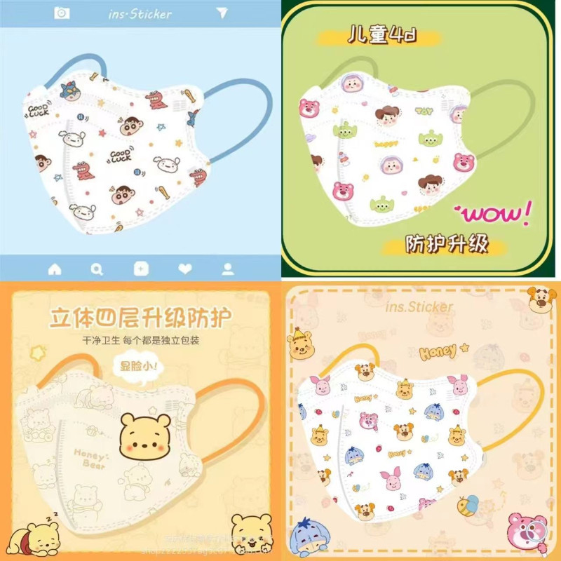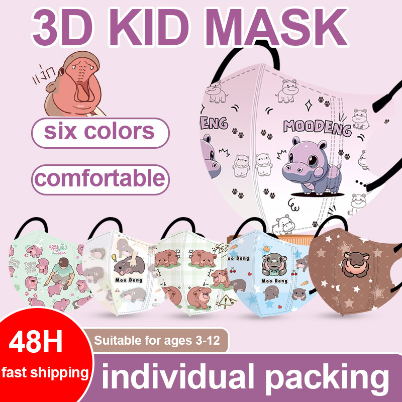 (ในสต็อก) 50 ชิ้นหน้ากากเด็ก 3D บรรจุภัณฑ์อิสระที่มีสีสันรูปแบบการ์ตูน 3PLY คุณภาพสูงป้องกันหน้ากากเด็ก