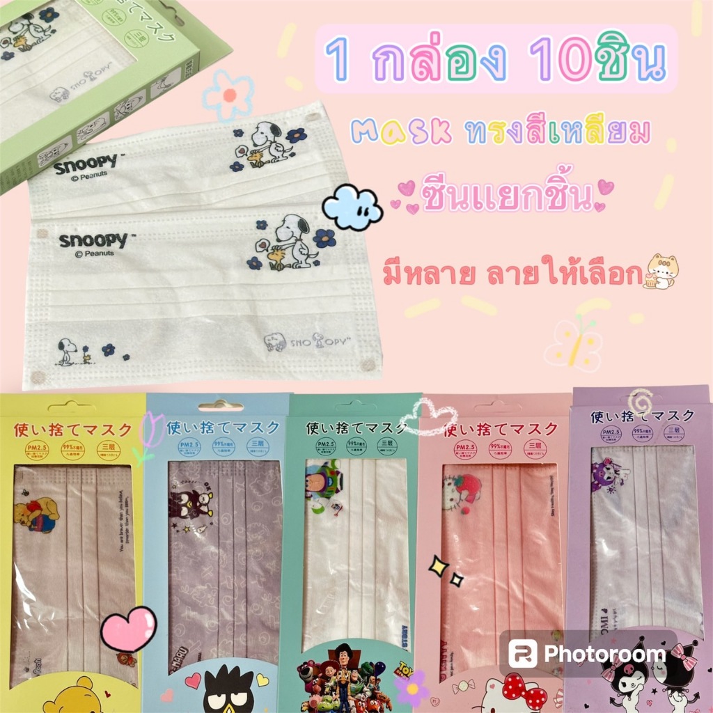 (1กล่อง10 ชิ้น) ??Mask ลายการ์ตูน ?แมสผู้ใหญ่ ลายการ์ตูนยอดฮิต ซีลซองใสแยกทุกชิ้น