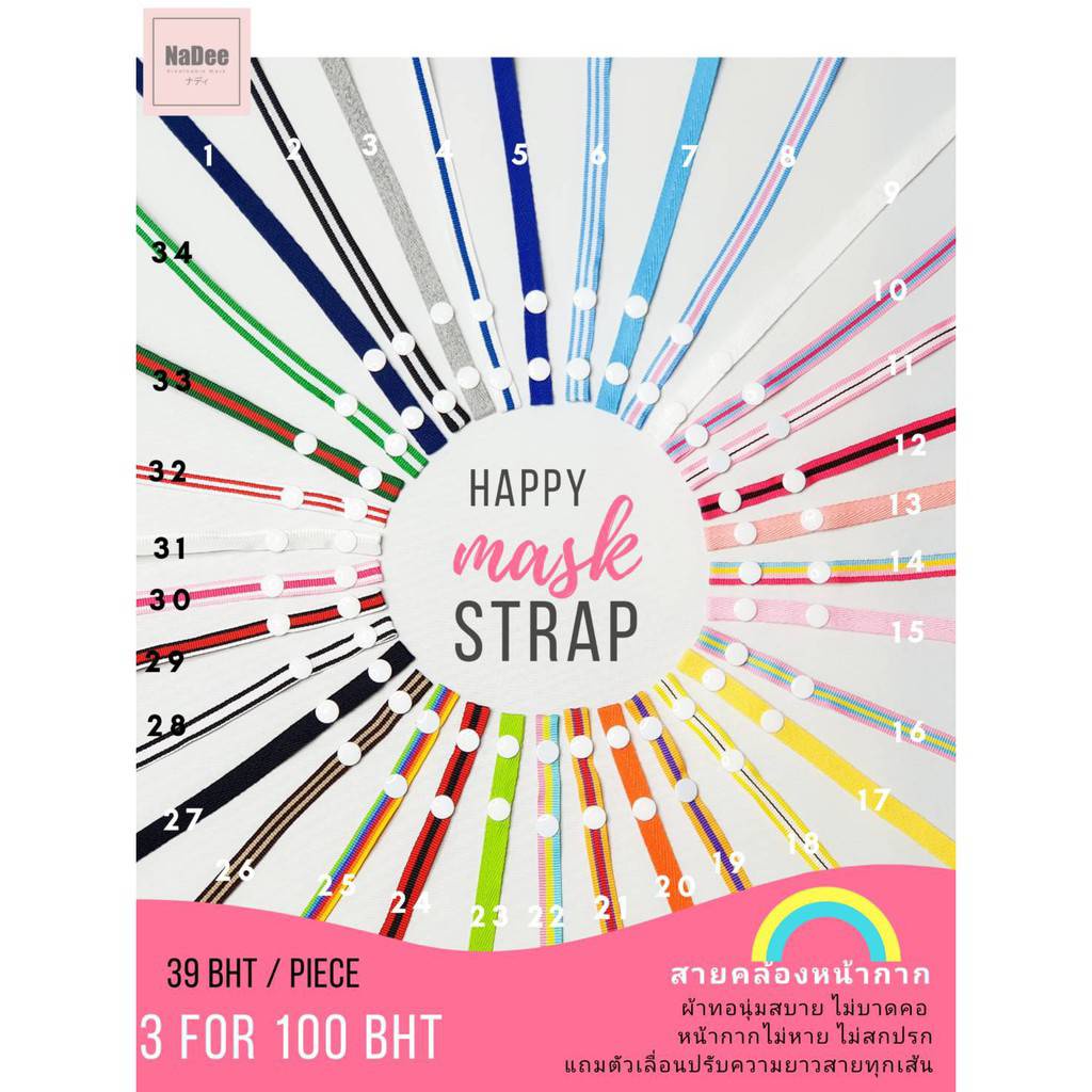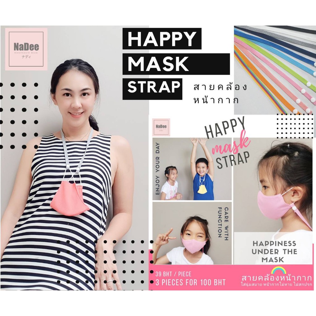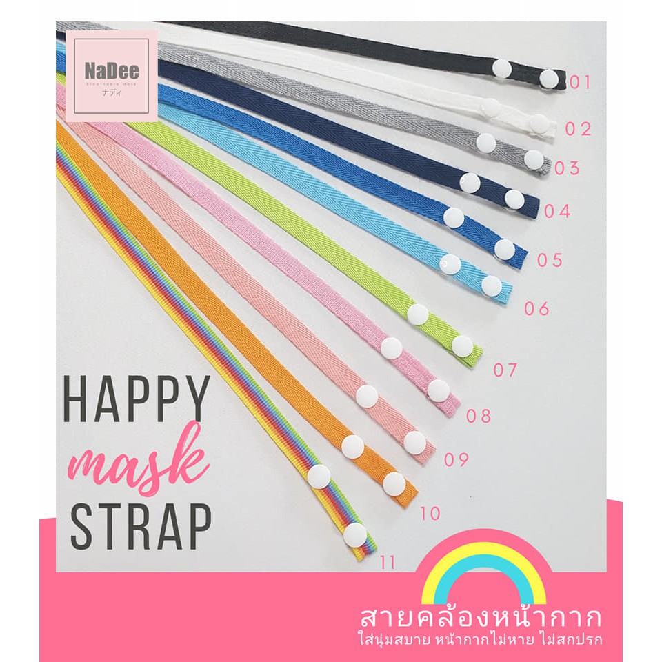 11.11?SALE? สายคล้องหน้ากากผ้าญี่ปุ่นนุ่มสบาย มีตัวปรับความยาวทุกเส้น NaDee Happy Mask St