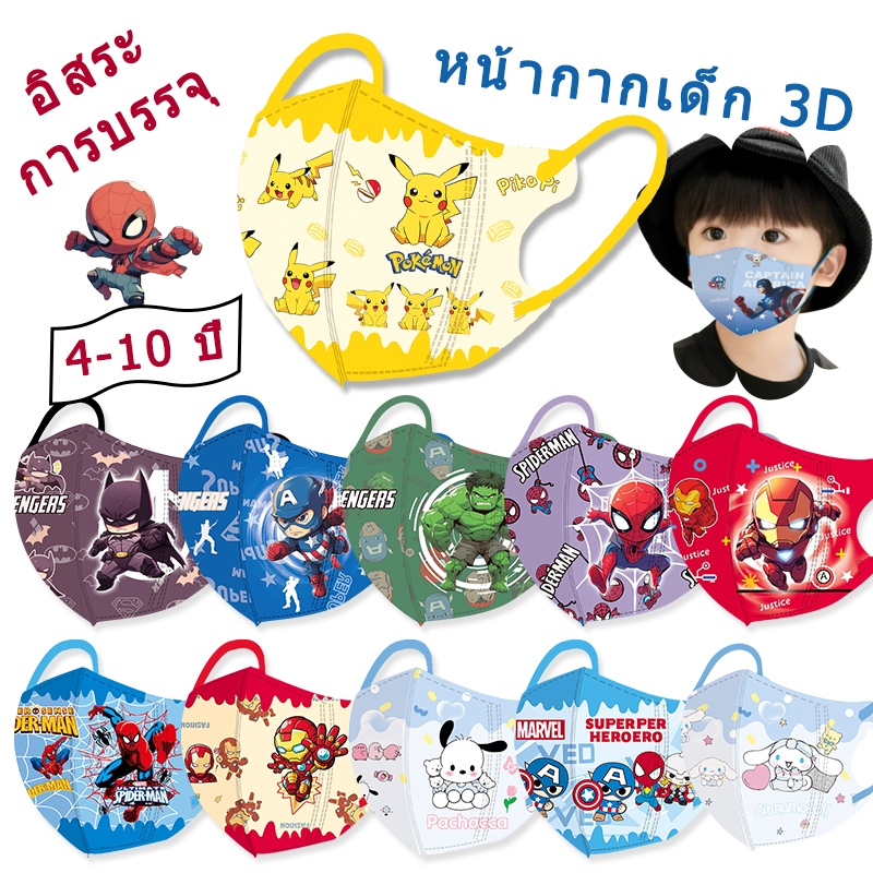 50 ชิ้น หน้ากากเด็ก 3D (แพ็คอิสระ) 3-12 ปี