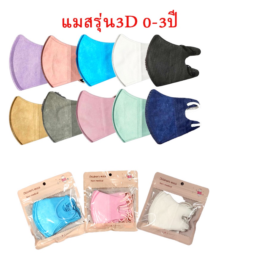 3D 0-3ขวบ แมสสีๆ สำหรับเด็กหนา3ชั้น ป้องกันละอองฝุ่นขนาดเล็ก ฝุ่นPM 2.5 1แพ็ค10ชิ้น