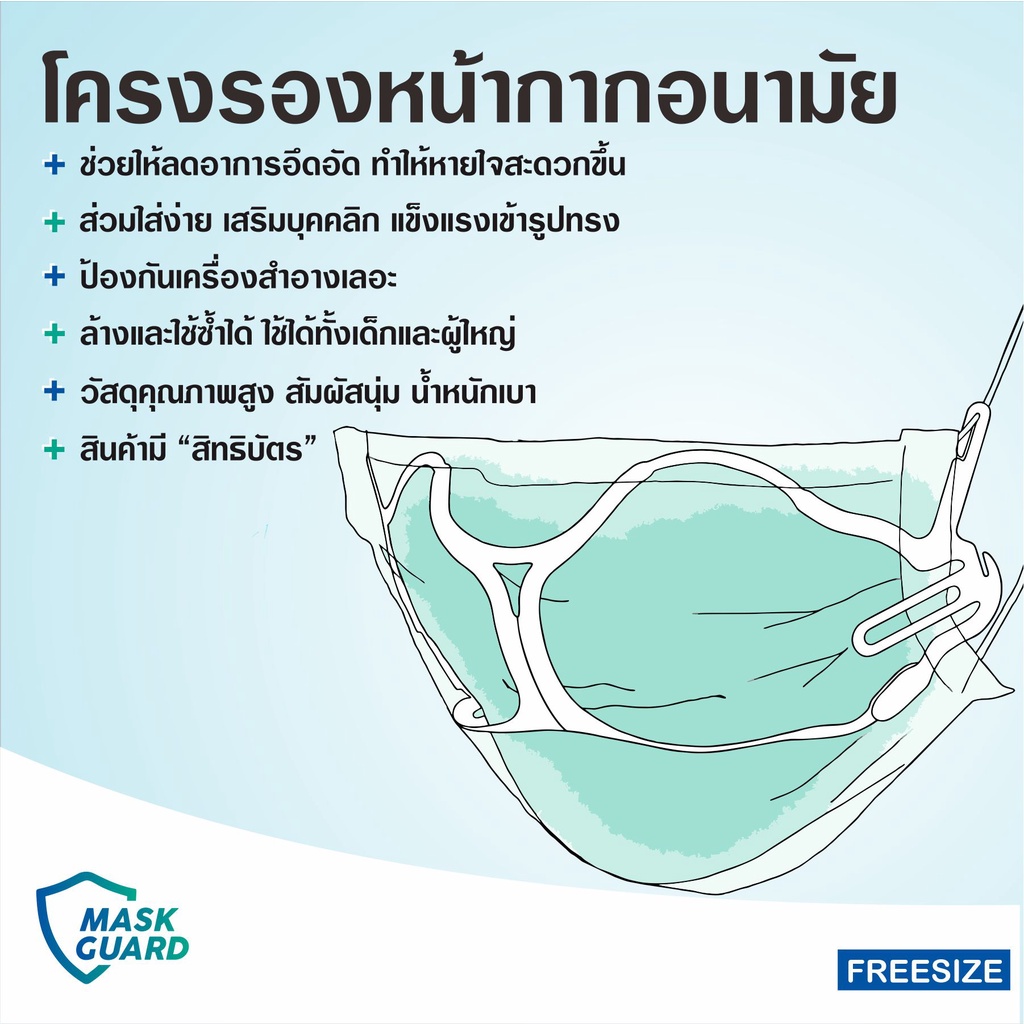 1แถม1 (ราคาพิเศษจำนวนจำกัด) โครงรองหน้ากากอนามัย โครงรองแมสหน้าเรียว รุ่นขายดี แอนตี้แบค ไม่ร้อน