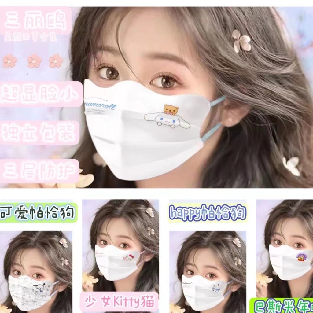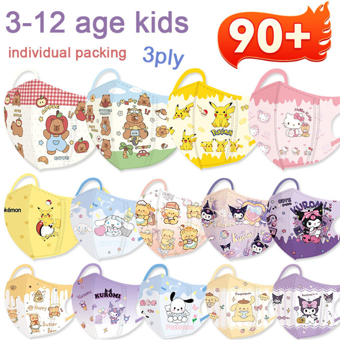 90++ตัวเลือกสี มี!! หน้ากากเด็ก 3D Capibala Pikachu Pok é Mon Melody Cinnamoroll หน้ากากเด็ก (บรรจุส่วนบุคคล) หน้ากากเด็ก 3D BFE98%
