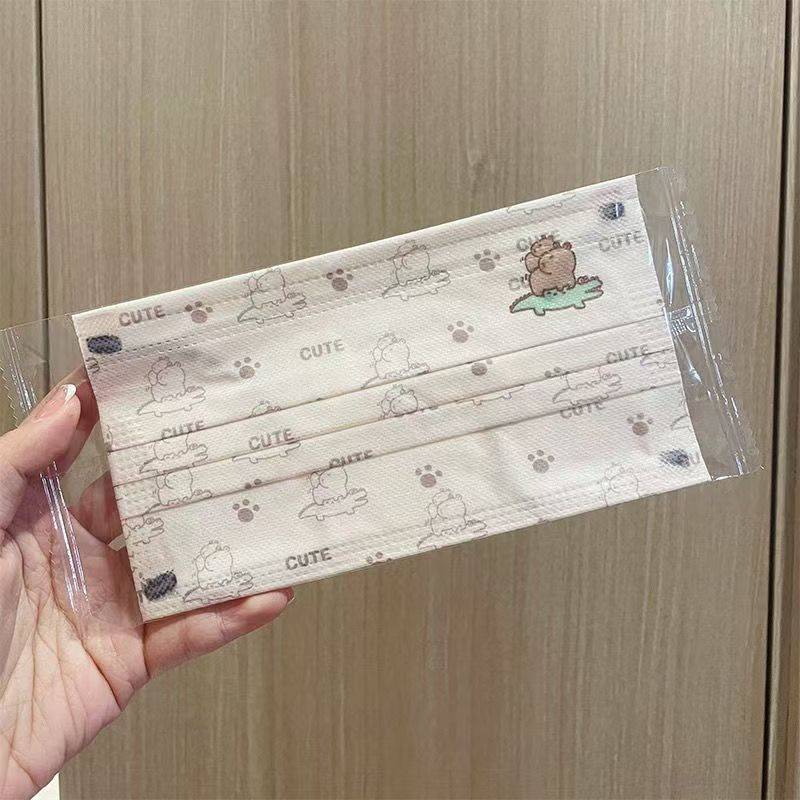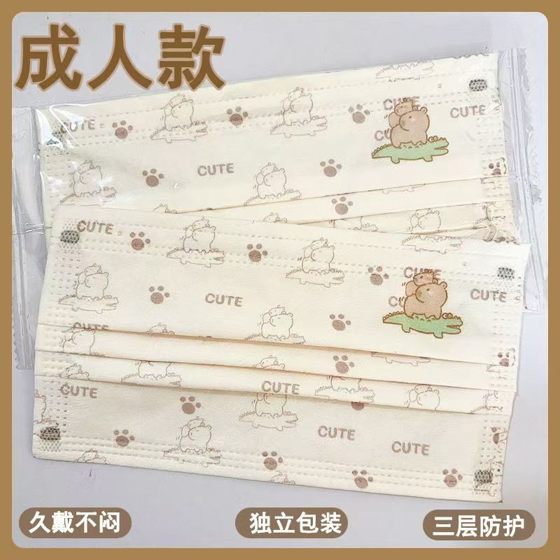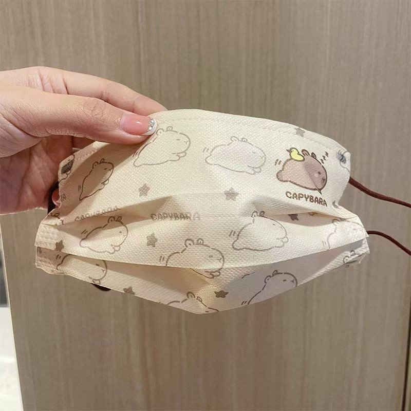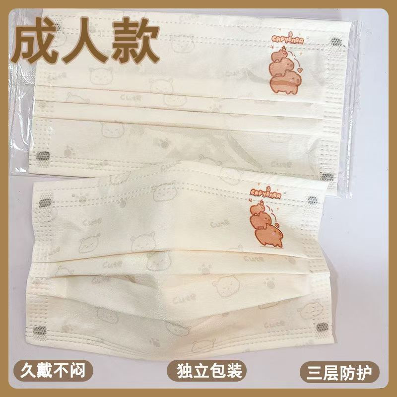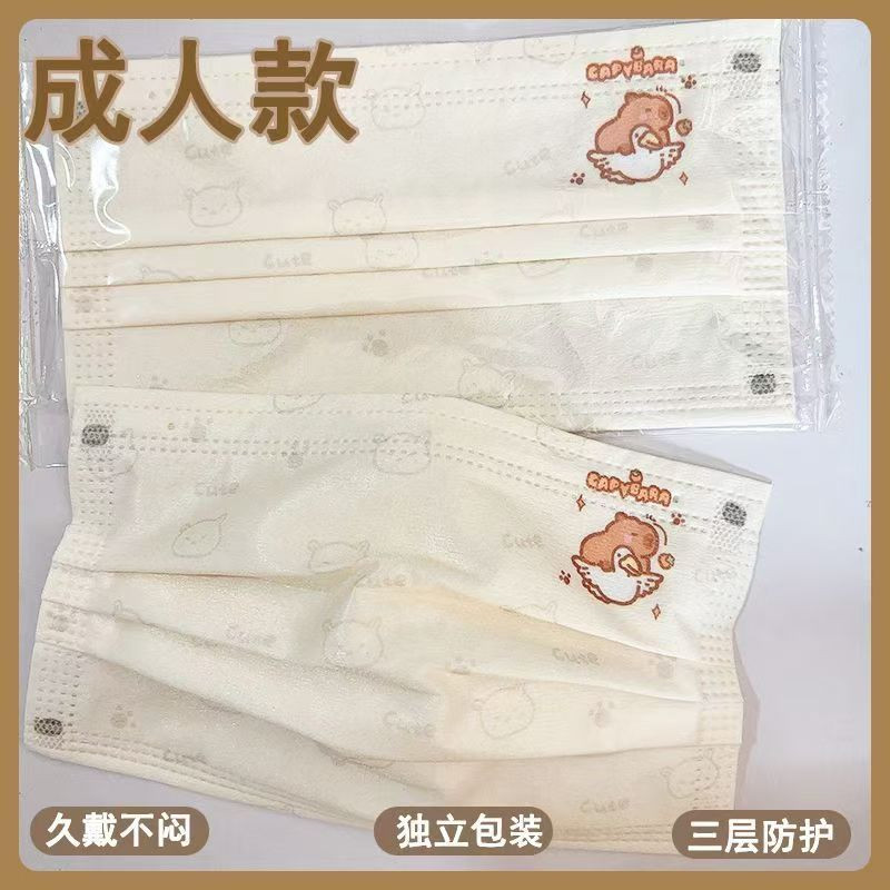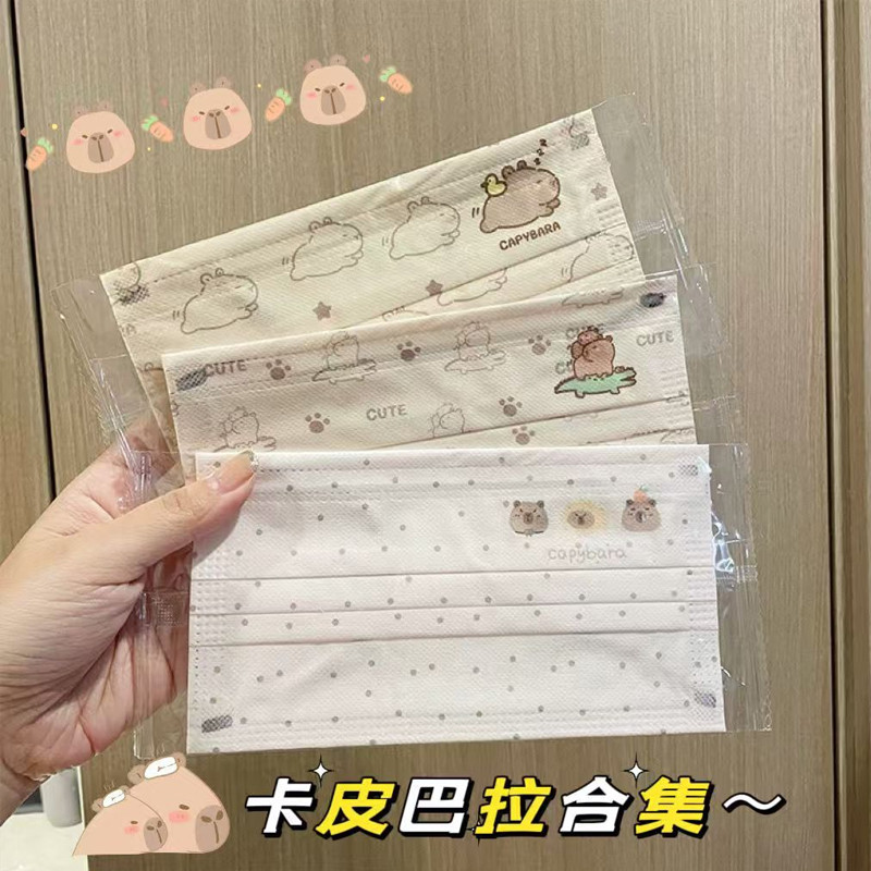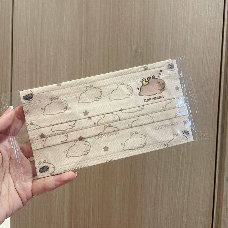 2025 ใหม่ 50 ชิ้นผู้ใหญ่การ์ตูน Capibala หน้ากากบรรจุหีบห่อเกาหลีรุ่นการ์ตูนแฟชั่นผู้ใหญ่ผู้หญิง 3 ชั้นน่ารักหน้ากากป้องกัน