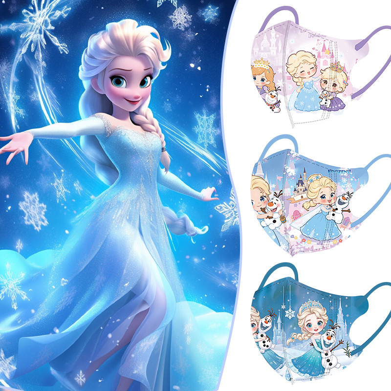 50ชิ้น2025ใหม่ถาม-รุ่นเอลซาเจ้าหญิงที่มีสีสันรูปแบบการ์ตูนหน้ากาก3ง หน้ากากเด็กบรรจุภัณฑ์อิสระ3-12ปีหน้ากากเด็ก3ง 3ชั้น-ทิ้งเด็ก/หน้ากากเ