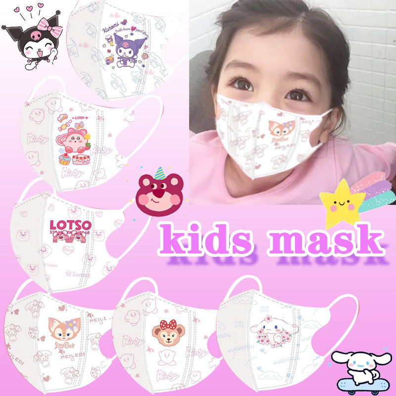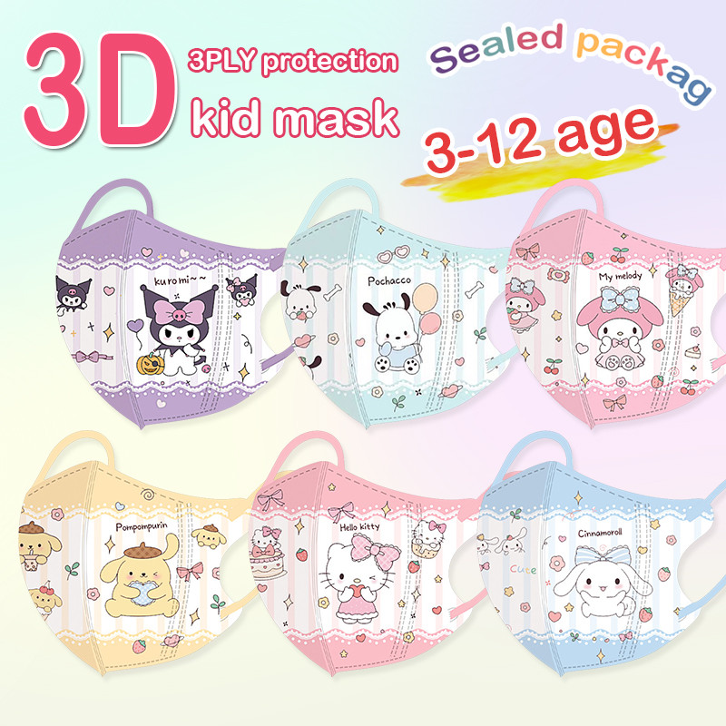 【จัดส่งด่วน】หน้ากากอนามัย ลายการ์ตูน Kuromi 3D 3-12 ปี บรรจุในกล่อง สําหรับเด็ก