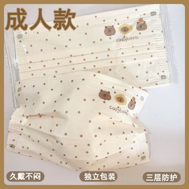 50 ชิ้นผู้ใหญ่มูลค่าสูง คาปิบาลา น่ารักหนูตะเภาพิมพ์หน้ากากสูงดูและแฟชั่นผู้หญิง 3 ชั้นหน้ากากป้องกัน
