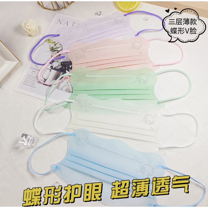 10 ชิ้น / 50 ชิ้น การ์ตูน ผู้ใหญ่ ผีเสื้อ Morandi รูปตัว V หน้ากาก แบบใช้แล้วทิ้ง ขั้นสูง ขนาดเล็ก แบบใช้แล้วทิ้ง หยัก สามชั้น Ins ที่เรียบง่ายและทันสมัย