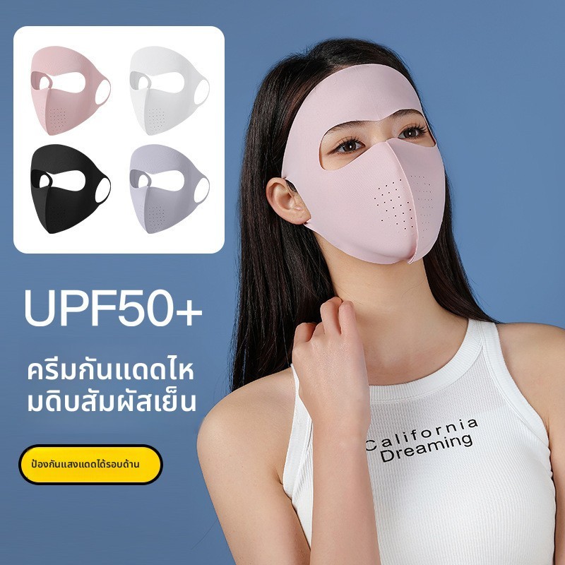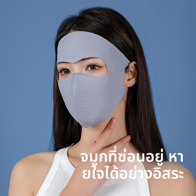 2025 ใบหน้าใหม่ คินี่ หน้ากากกันแดดแบบเต็มหน้าผู้หญิงฤดูร้อนป้องกันรังสียูวีผ้าไหมน้ําแข็งแสงระบายอากาศหน้ากากกันแด