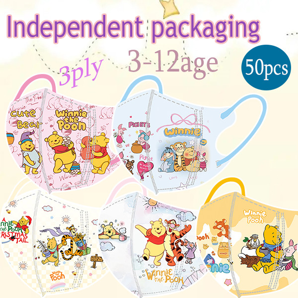 2025 หน้ากากการ์ตูนใหม่ หน้ากากเด็ก 50pcs 3d หน้ากากสเตอริโอบรรจุส่วนบุคคล หน้ากากเด็กชาย 3-12 ปี Winnie รูปแบบการ์ตูนซีรีส์ Pooh
