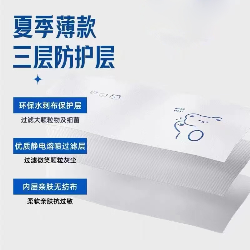 หน้ากากกันฝุ่น ระบายอากาศ พิมพ์ลายการ์ตูนหมีน่ารัก แฟชั่นฤดูร้อน สําหรับเด็ก จํานวน 50 ชิ้น