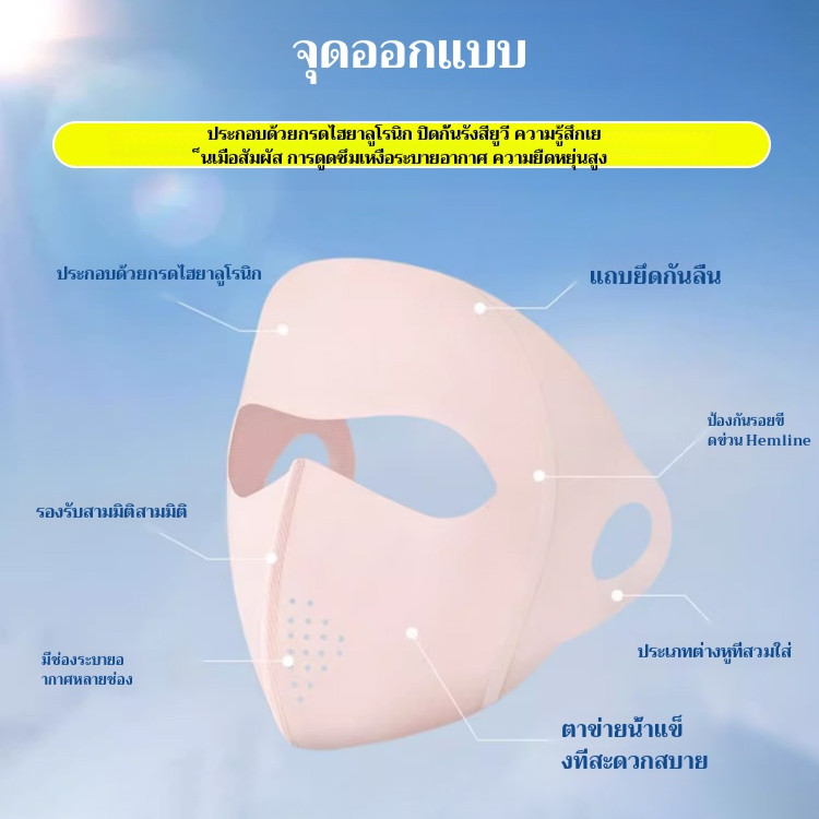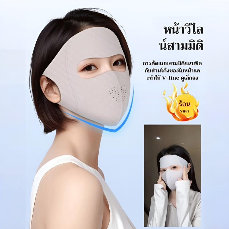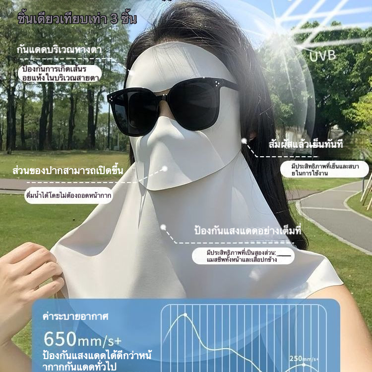 หน้ากากกันแดดเต็มใบ ผ้าไหมน้ำแข็ง ป้องกัน UV ออกแบบสามมิติ สวมใส่ง่าย พกพาสะดวก เพื่อกิจกรรมกลางแจ้ง