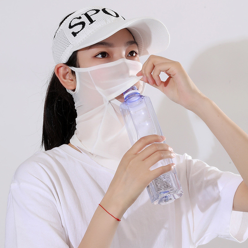 หน้ากากตาข่ายผ้าไหมน้ำแข็งสำหรับฤดูร้อน ป้องกันแสงแดดได้ดี มีขนาดใหญ่ครอบคลุมทั้งใบหน้าและปาก