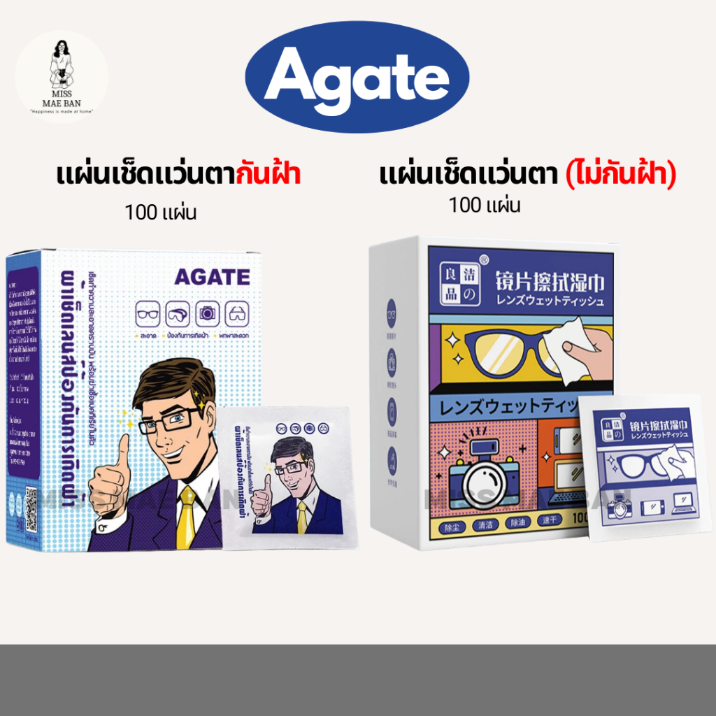 Agate แผ่นเช็ดแว่นตา 100แผ่น ผ้าเช็ดแว่นตา ผ้าเช็ดแว่นกันฝ้า ผ้าเช็ดเลนส์แว่น ที่เช็ดโทรศัพท์