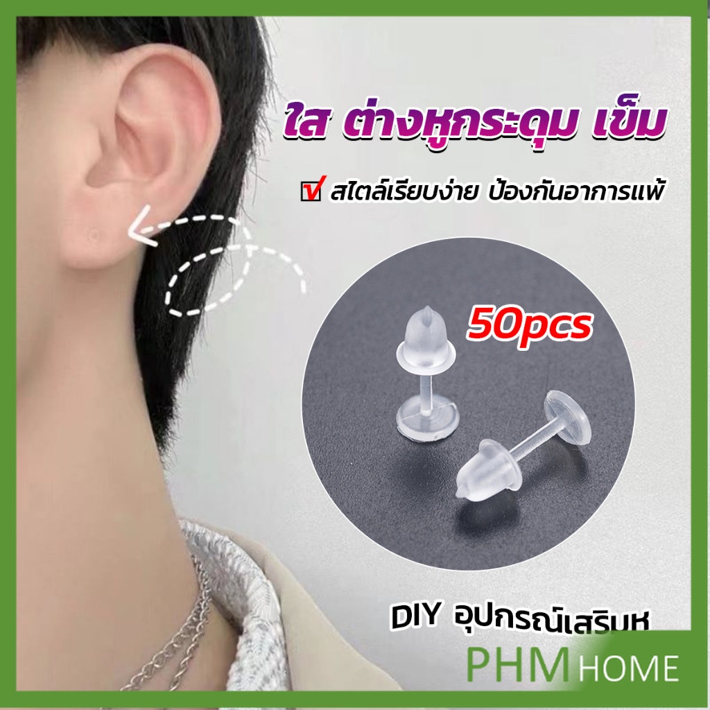 แป้นต่างหูพลาสติก ป้องกันการแพ้ หรือ DIY ต่างหู สีใส มี 25 คู่