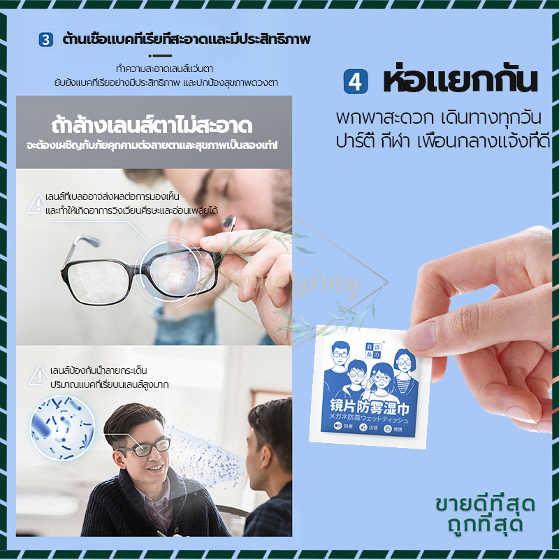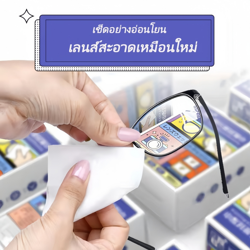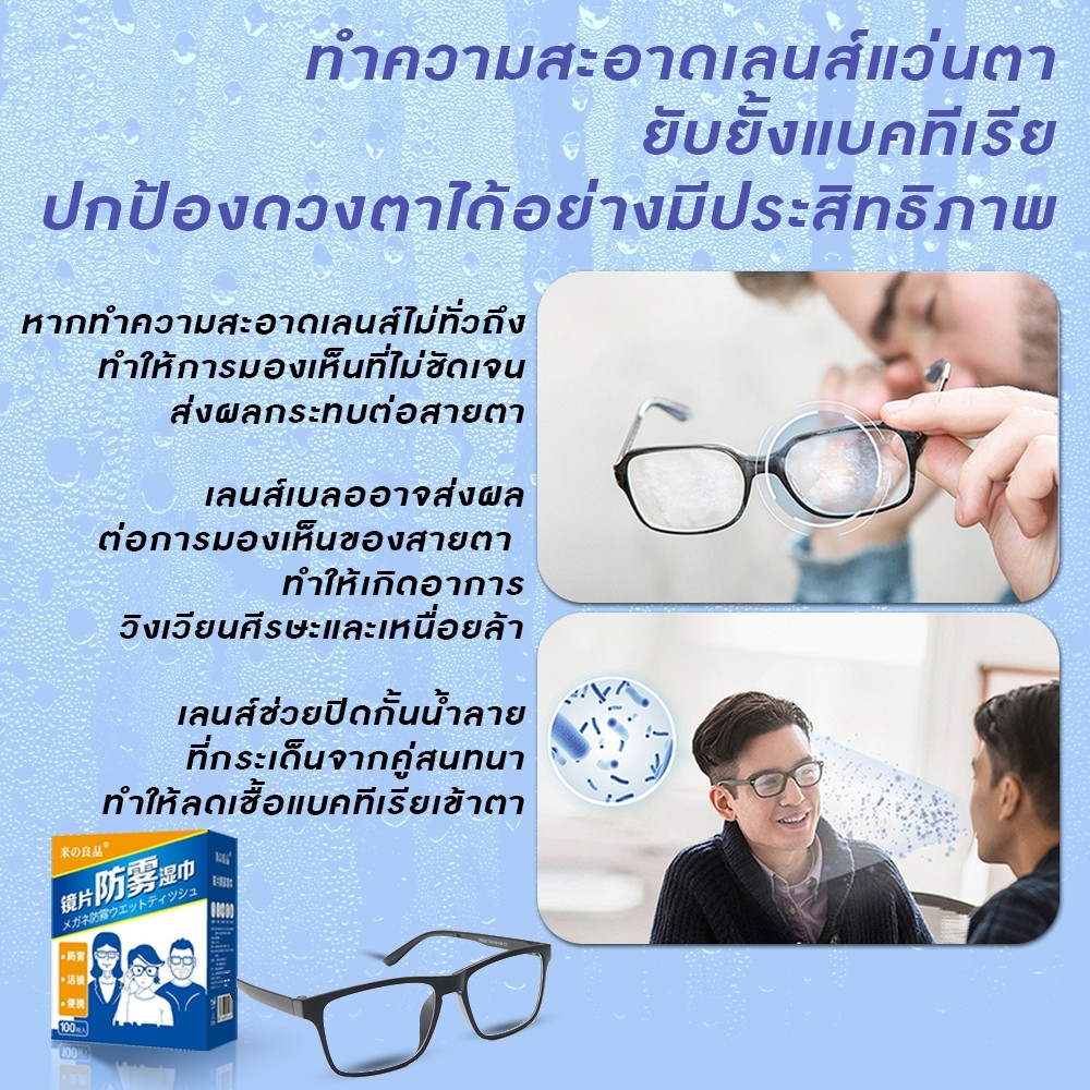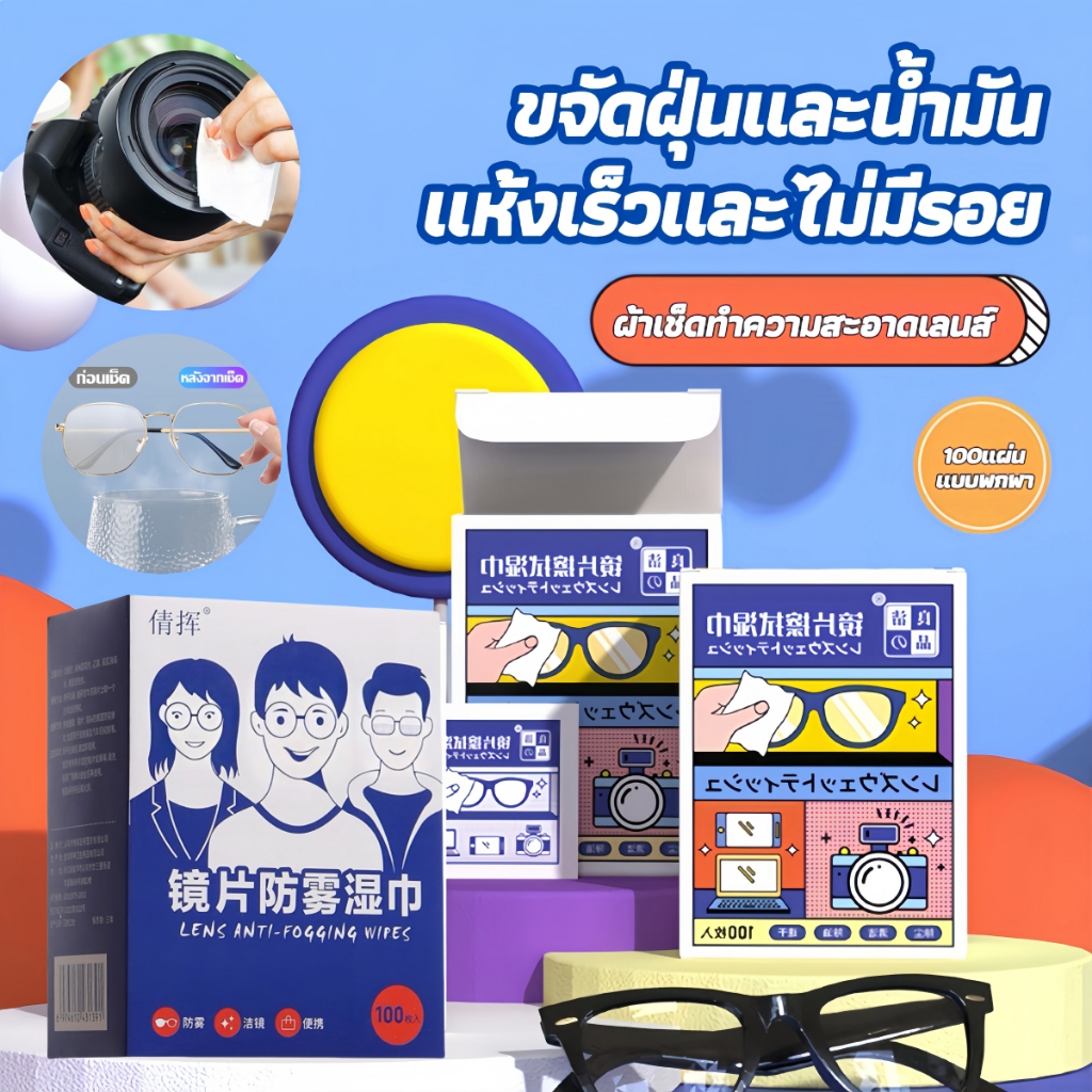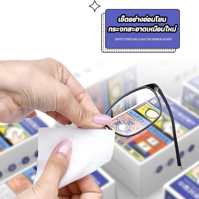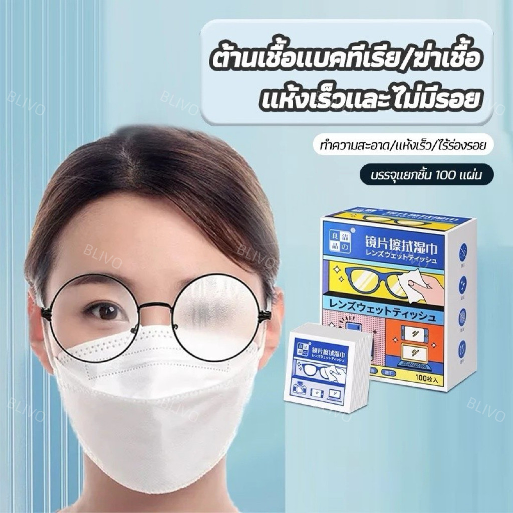 แผ่นเช็ดแว่นตากันฝ้า แผ่นเช็ดแว่นตา ผ้าเช็ดแว่น 100แผ่น กันฝ้า ฝุ่น ปกป้องเลนส์อย่างดี แผ่นเช็ดเลนส์ แห้งเร็ว ไม่ทิ้งรอยขีดข่วน แผ่นเช็ดเลนสแว่น ผ้าเช็ดแว่นกันฝ้า เช็ดเลนส์