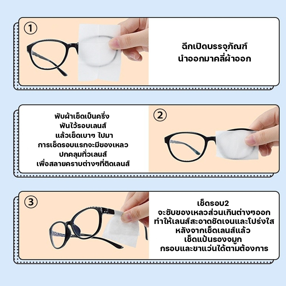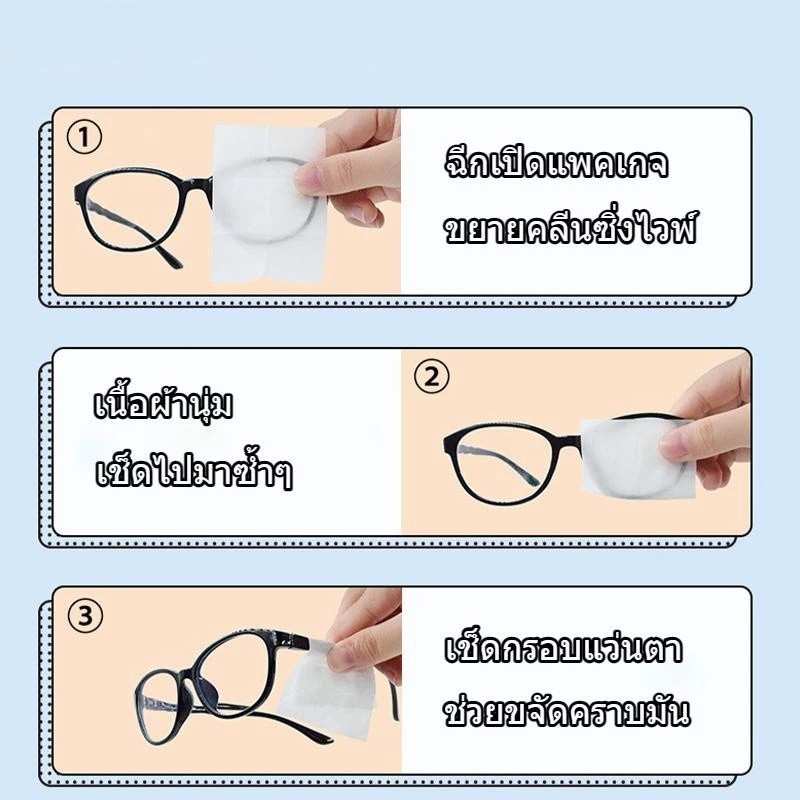 แผ่นเช็ดแว่นตา กันฝ้า แบบเปียก 100แผ่น เช็ดคราบน้ำมัน สะอาดไว ปลอดภัยต่อเลนส์แว่นตา ผ้าเช็ดแว่นตา