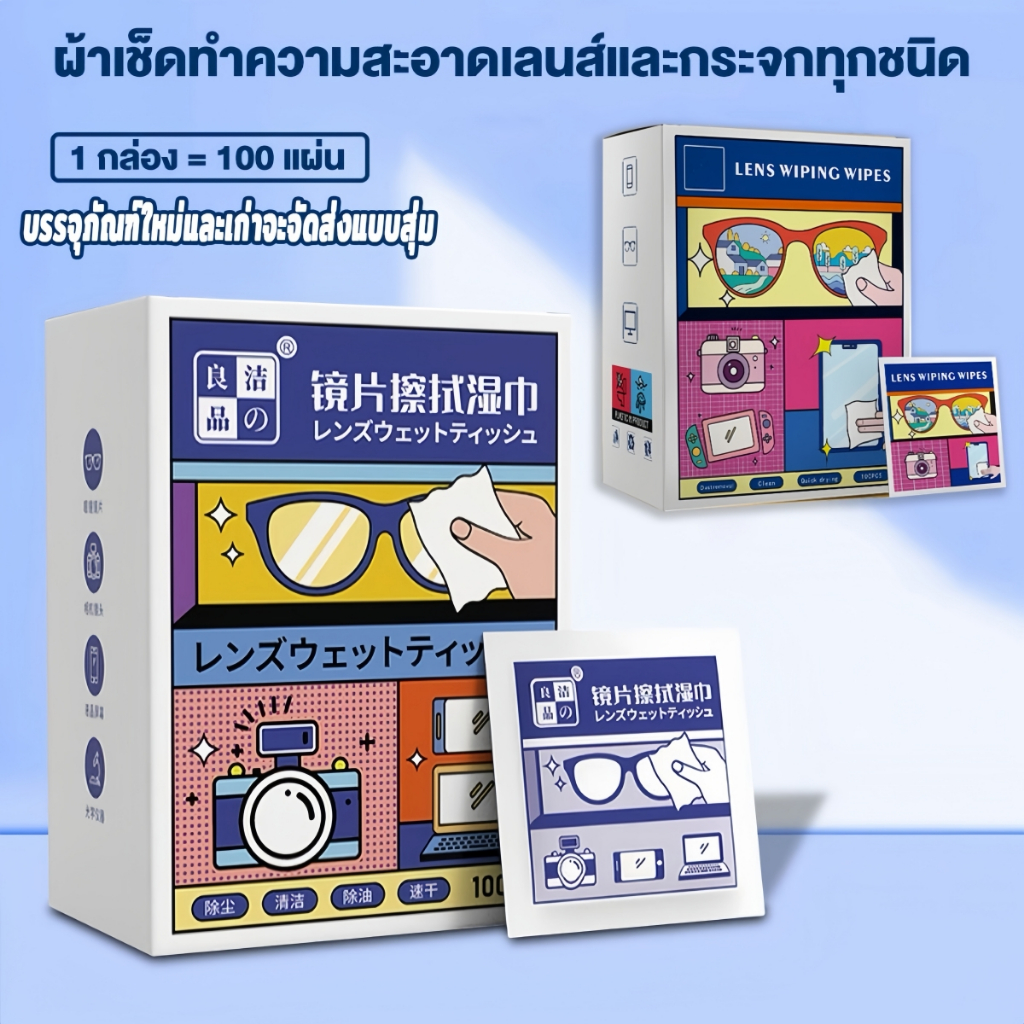 แผ่นเช็ดแว่นตา กระดาษเช็ดแว่น โทรศัพท์ 100 ชิ้น ผ้าเช็ดทำความสะอาดเลนส์ จัดส่งจากประเทศไทย