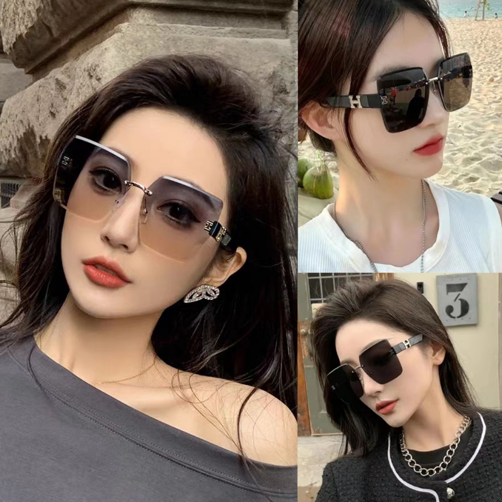 (HENGHA) COD แว่นกันแดด กรอบเหลี่ยม แฟชั่นสำหรับผู้หญิง
